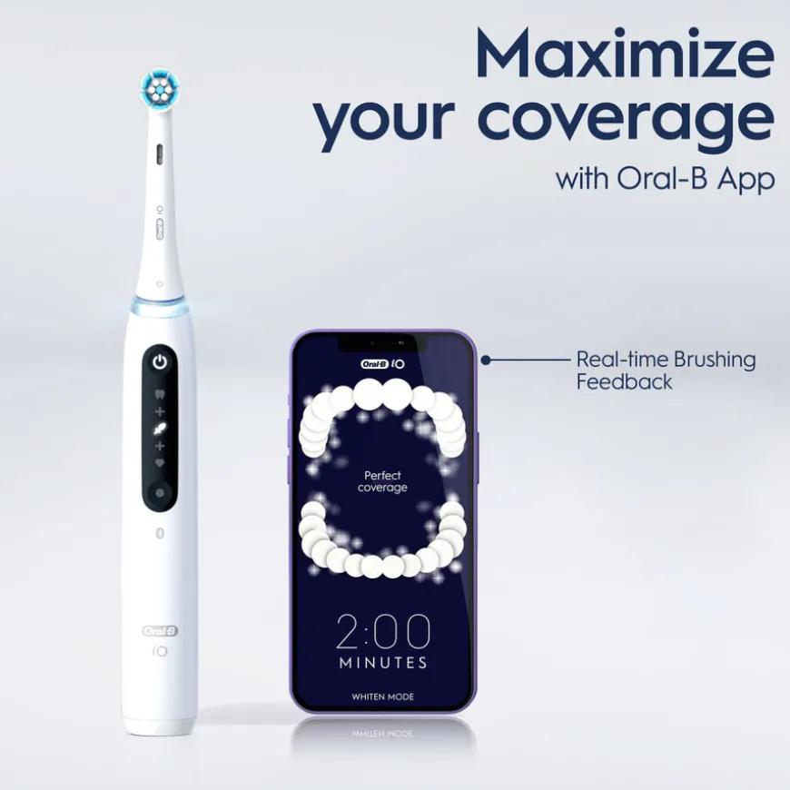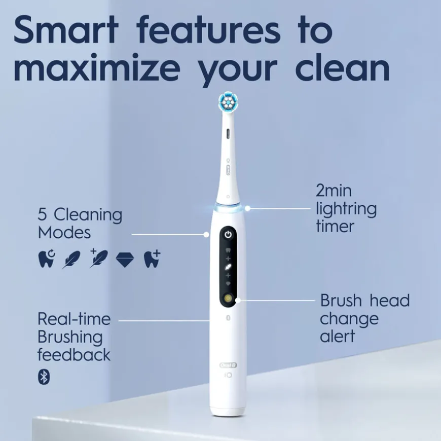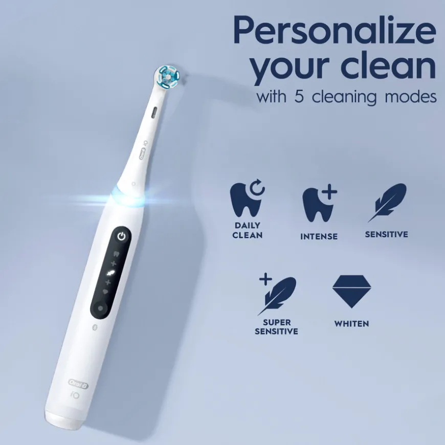 Oral-B O 5 elektrisk tannbørste har Oral-Bs beste teknologi, og kombinerer et tannlegeinspirert rundt børstehode med mikrovibrerende børstestrå for en profesjonell ren følelse hjemme. Den smarte trykksensoren hindrer at du pusser for hardt eller for svakt, for å gi en bedre beskyttelse av tannkjøttet. Kunstig intelligens børstegjenkjenning gjenkjenner pussestilen din og veileder deg for enda bedre tannpussing hver dag. Kobles til den kostnadsfrie Oral-B-appen for sporing av tannbørsten i sanntid og veiledning i 6 pusseområder. Bytt ut Oral-B iO børstehodet hver 3. måned for best mulig resultat.