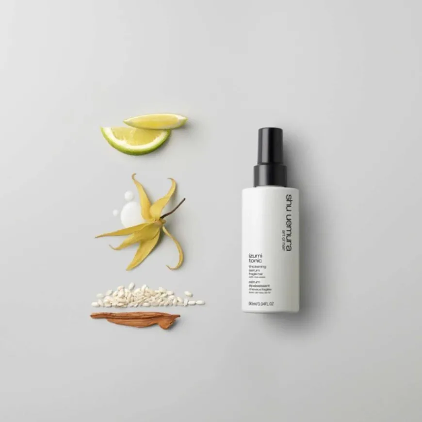 Izumi Tonic Thickening Serum er et hårserum fra Shu Uemura. Et lett serum som er drevet av ceramider. serumet brukes sammen med izumi tonic-rutinen som vil hjelpe med å styrke og tykne håret ved å øke fiberdiameteren. Izumi – fontene på japansk – tonic styrkende energigivende vann er inspirert av yu-su-ru, den eldgamle japanske tradisjonen for hårskjønnhet ved å bade håret i risvann. Håret er opptil 30 ganger sterkere, tykkere og beskytter opptil 91% mot hårslitasje av flisete tupper. Håret er mykt, glatt og fult av glød.