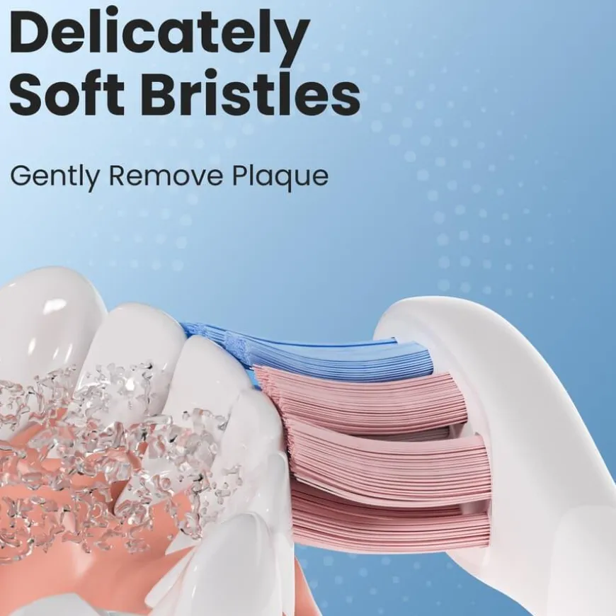- Silikonbelagt bakside for ekstra skånsomhet mot munnvev og tenner.