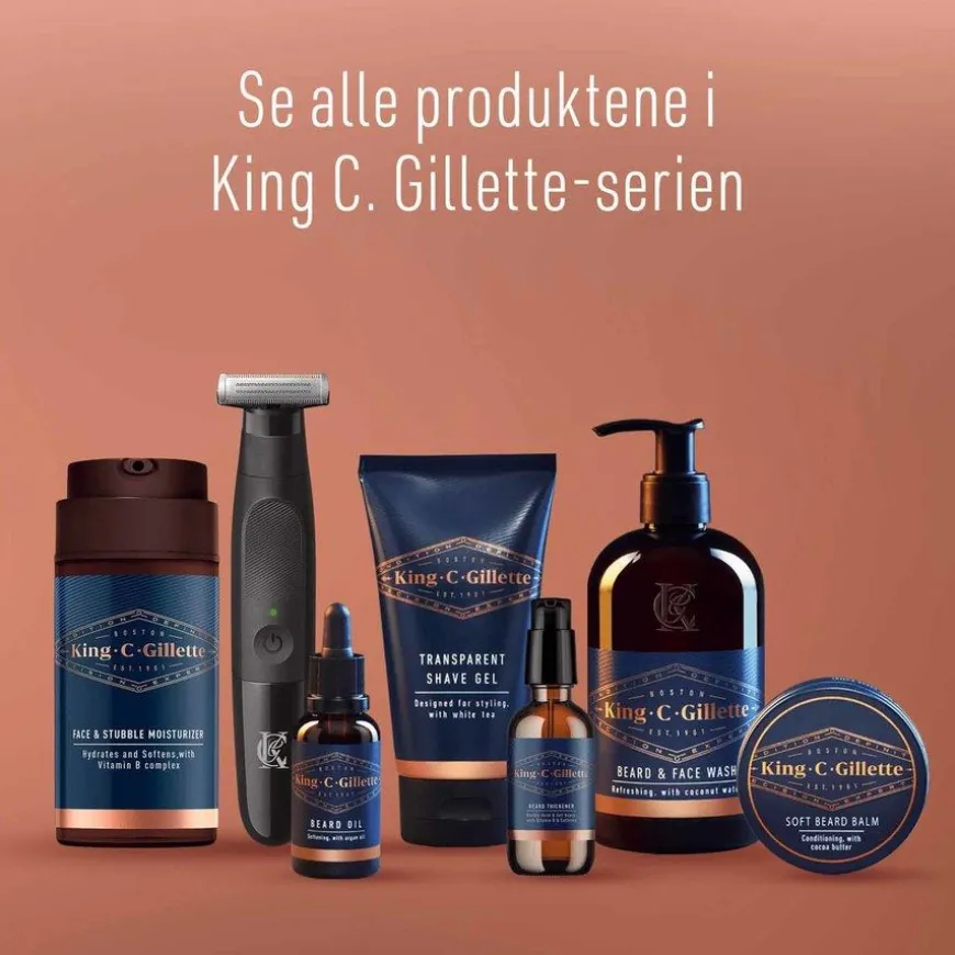 Beard Thickener Serum er et skjeggserum som får menns skjegg til å se og føles merkbart tykkere ut. Skjeggserumet er beriket med vitamin B3 (nikotinamid), provitamin B5 (pantenol), arganolje og koffein. Det styrker og gjør hvert hårstrå tykkere, for å beskytte mot brukne hårstrå og få skjegget til å se fyldig ut. King C. Gillette skjeggserum pleier også håret for å gi myke og glatte kanter – for økt komfort. Formelen, med King C Gillettes signaturduft, er både lett og hurtigtørkende og beroliger og kjøler huden.