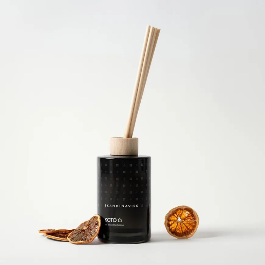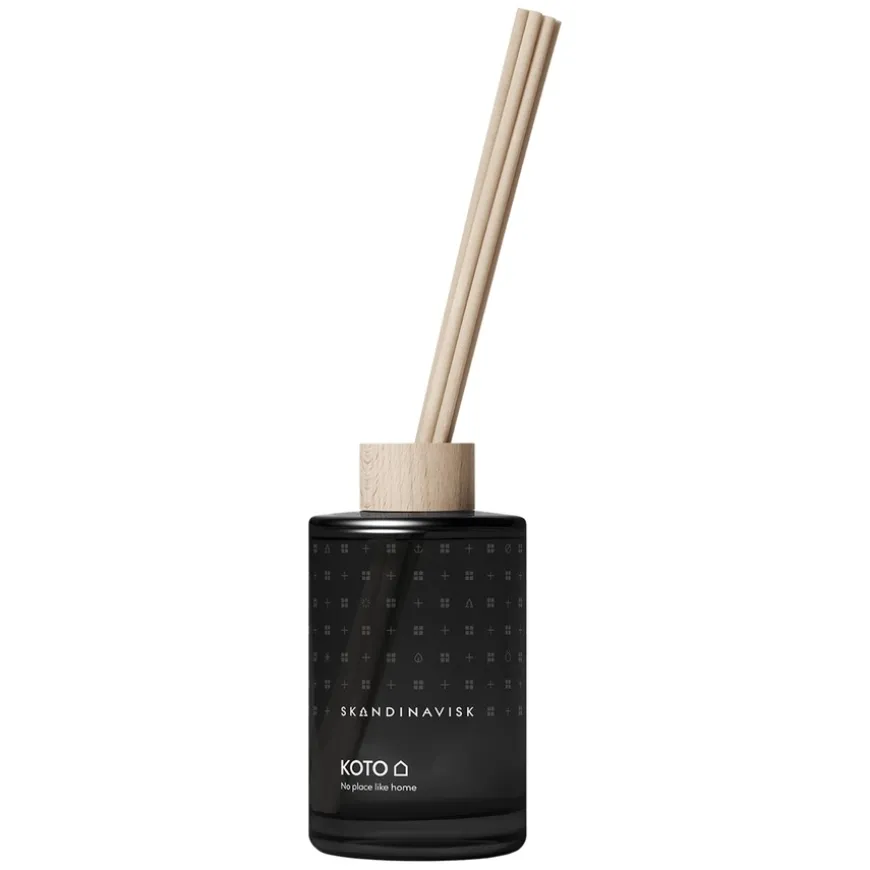Skandinavisk KOTO Scent diffuser kombinerer skandinaviske duftfortellinger med vegetabilske oljer fra fornybare kilder, fylt i en malt glassvase. Den har en dekorativ FSC-sertifisert bøketre-ring og åtte høyytelsespinner som gir en skånsom og bærekraftig romduft i opptil 3 måneder.