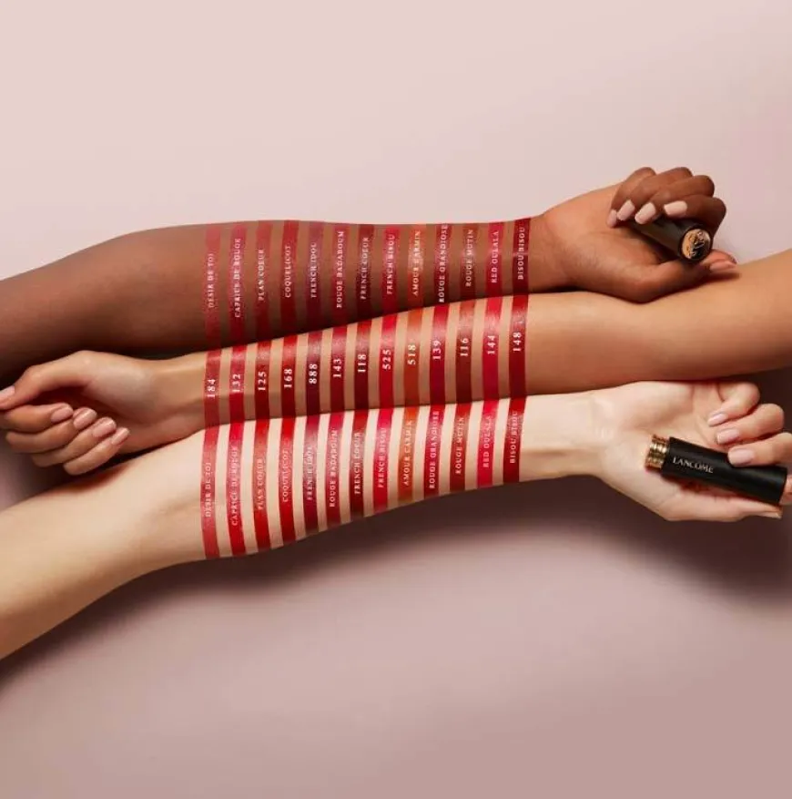 Lancôme L’Absolu Rouge Cream Lipstick: herlig komfort, glatte og levende lepper med en strålende kremfinish, i 39 luksuriøse farger. Den ikoniske sammensetningen er nå beriket med fuktighetsgivende rosebalm, en blanding med hyaluronsyre, samt kaldpresset olje for opptil 18 timer med luksuriøs komfort. Levende farge og luksuriøs pleie, ingen kompromiss er nødvendig. Intens farge møter komfort på leppene. Opplev utsøkte tidløse nyanser eller kreative signaturfarger fra Star Shades, alt innkapslet i et nytt, eksklusivt hylster laget i Frankrike.