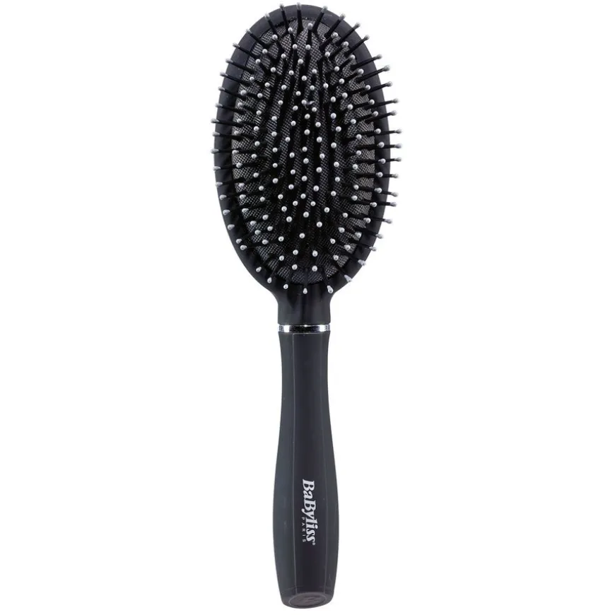 Large Paddle Brush Black er en stor padlebørste for alle hårtyper. Børsten løsner håret helt ned til hårrøttene. Behagelig å børste med takket være myk og avrundet bust som også masserer hodebunnen og den pneumatiske puten som gjør at hodets form kan følges bedre. Ergonomisk håndtak gir et behagelig grep. Farge: svart