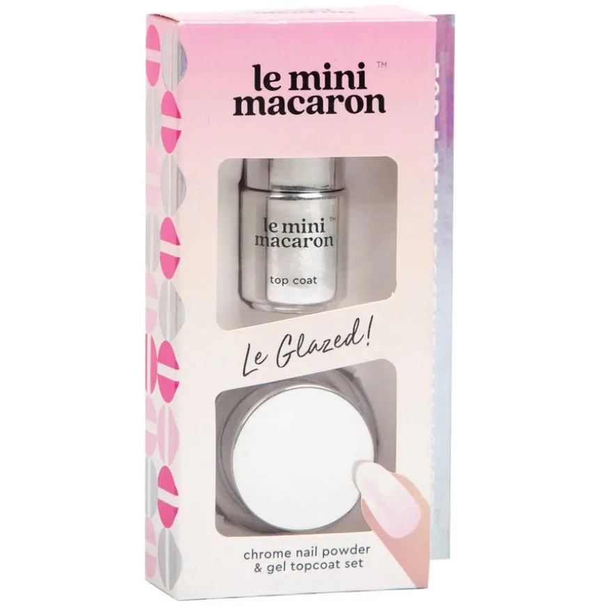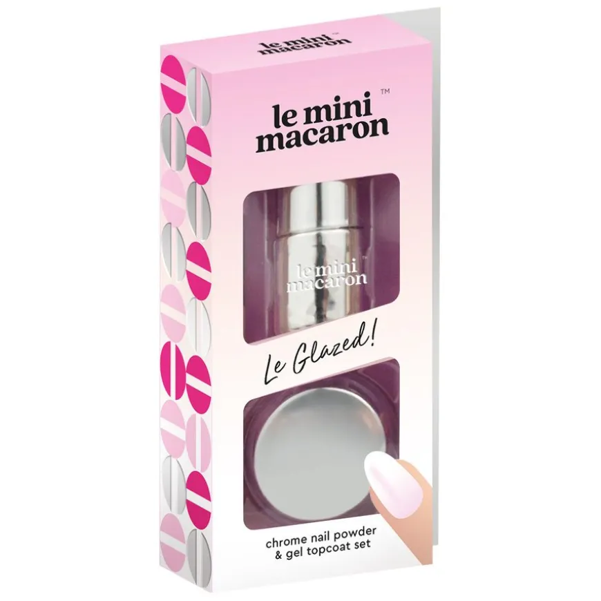 Le Glazed Chrome Powder Set er det perfekte settet for å oppnå den trendy glaserte donut-negleeffekten! Med Le Glazed kan du skape en fantastisk skinnende, perlemorsfarget kromfinish på neglene dine, som minner om en deilig glasert donut. Dette unike neglepulveret er designet for bruk oppå din Le Mini Macaron single gel polish for de beste resultatene. For å oppnå den populære hvite «glazed-bieber»-manikyren, anbefales det å bruke Le Glazed sammen med Milkshake eller Chantilly (selges separat). Sammen med den hvite fargen vil pulveret gi en vakker perlemorsfarget nyanse med rosa undertoner, som perfekt kompletterer det glaserte donut-utseendet.