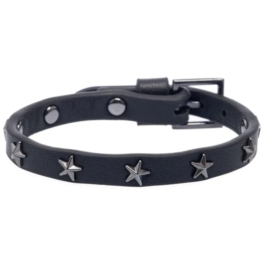 Leather Star Stud Bracelet Mini er et skinnarmbånd i ekte skinn med stjerne nagler. Justerbar størrelse.