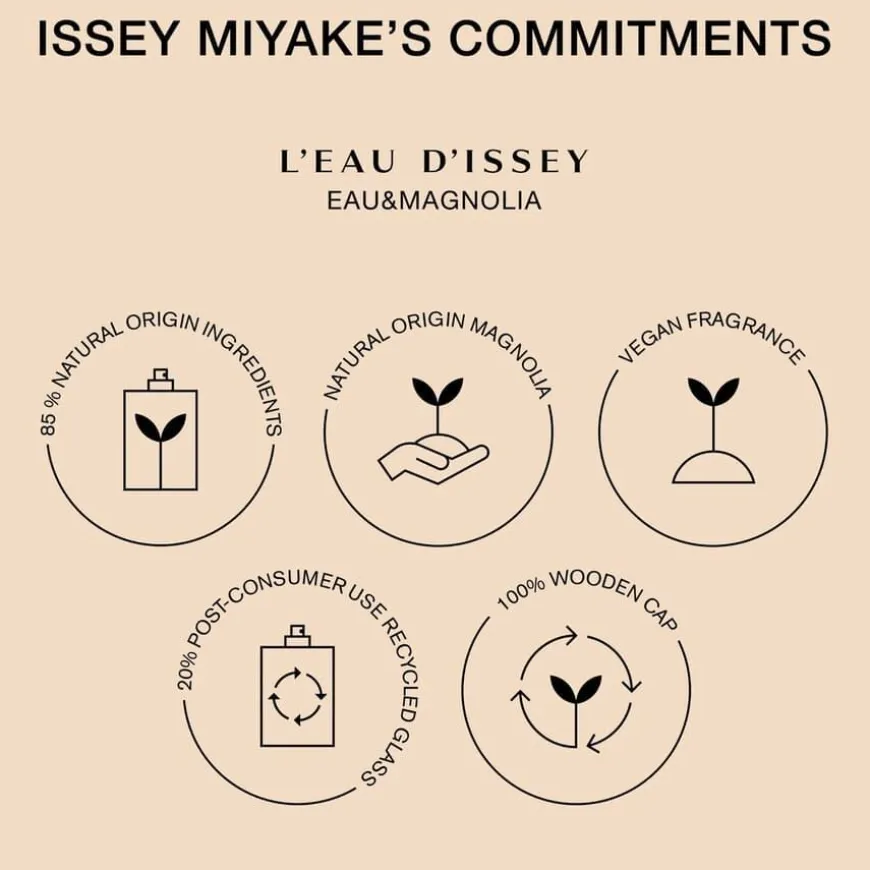 30 år etter at Issey Miyake lanserte suksessen L’Eau d’Issey, lanserer han nå L’Eau d’Issey Eau&Magnolia. Inspirert av vann som møter røff natur, har Issey Miyake kreert en delikat og floral duft hvor elementet vann møter fløyelsaktige blader av magnolia, og sammen skaper de en sensasjon av en duft.