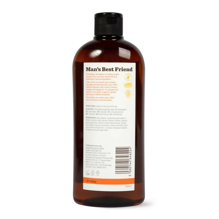 Bulldog Lemon & Bergamot Shower Gel er en dusjgel med en frisk duft av sitrus som gjør deg klar til å møte dagen. Dusjgelen kommer i en generøs flaske med 500ml som er lett å åpne og er laget av 100% gjenvunnet materiale. Produktet er vegansk og gjør rent uten å tørke ut huden. Denne solrike og oppfriskende eksplosjonen av sitrus løfter deg opp og gjør deg klar til dagen, uansett hvilket vær som venter ute! Gjør deg ren uten å tørke ut huden. Oppfriskende noter av appelsin, sitron, lime og bergamott kompletteres med basilikum, rosmarin og sedertre. Inneholder 100% naturlig duft. Inneholder ingen syntetiske fortykningsmidler.
