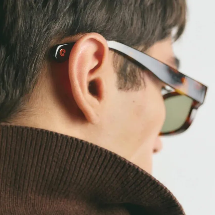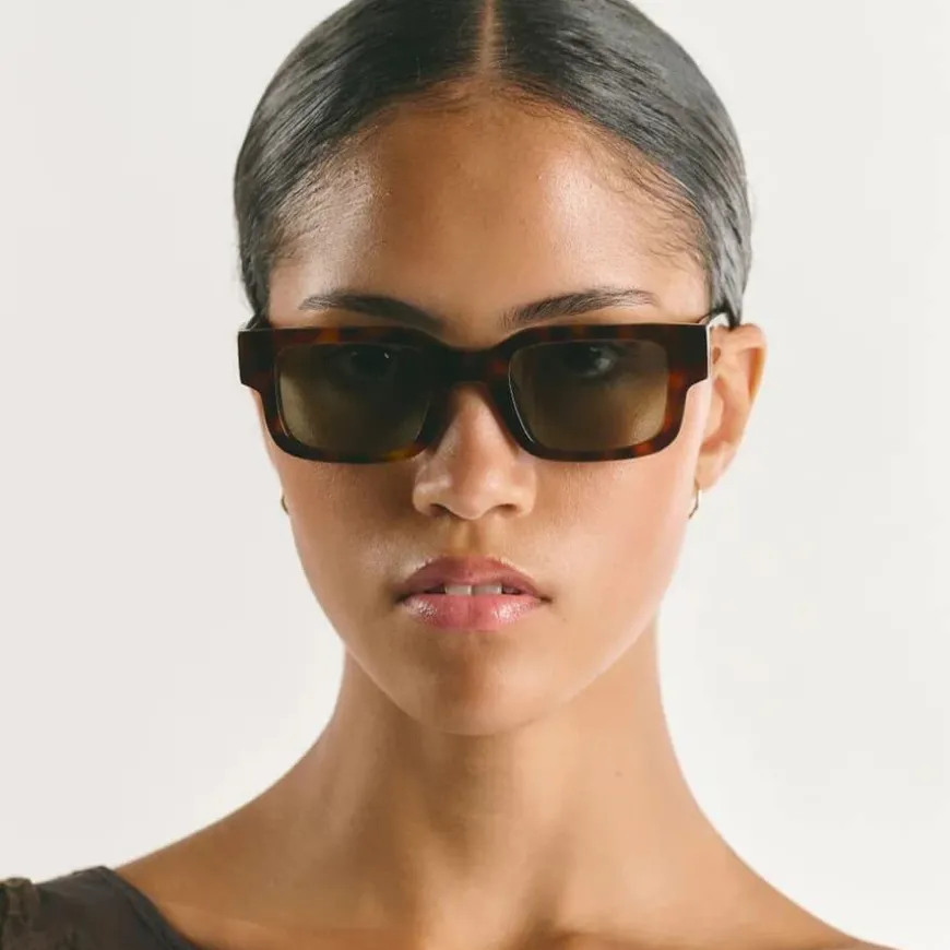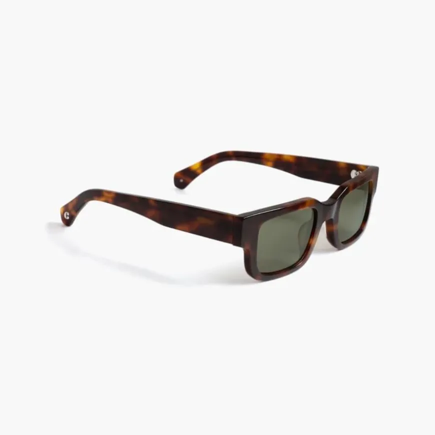Leon Tortoise Green kombinerer en tortoise-farget ramme med grønne glass i en firkantet silhuett, fremhevet av den diskre gull C-logoen på baksiden av stangen.