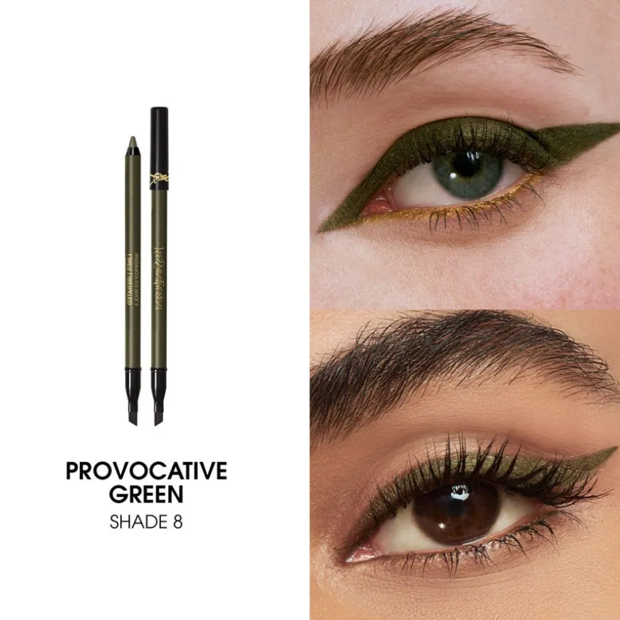 YSL Lines Liberated er en vannfast eyeliner som gir kraftig farge med bare ett strøk.Lines Liberated er den nye eyelineren fra YSL. Pigmentrik, enkel å blende og med opptil 24t* holdbarhet. Gnis ikke utover. Vannfast. Våg å oppdage kraftige pigmenter med en dose friske farger i ett strøk. Ekstra kraftige pigmenter for dristig, satengmatt og kromaktig finish. Tilgjengelig i opptil 12 nyanser. Matt finish: Svart, beige, blå, oransje Satin matte finish: Brun, grønn, plomme Chrome-farger: Bronse, gull, sølv, rosa, svart perlemor