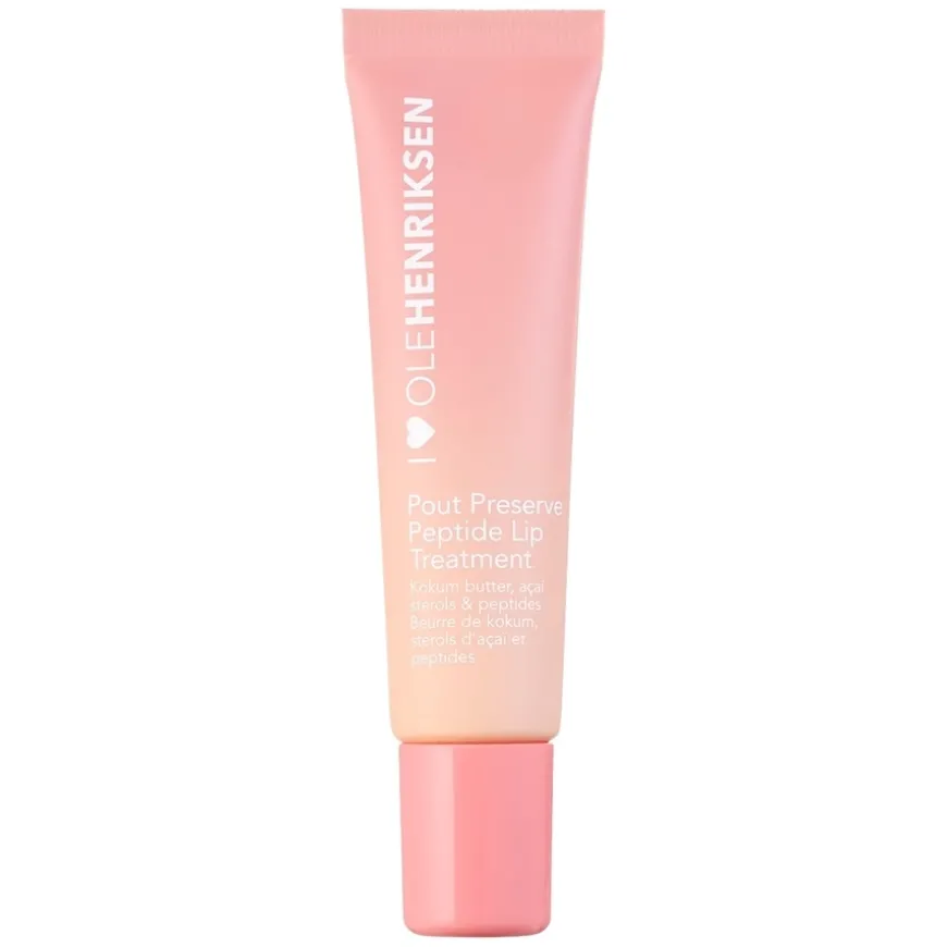Lip Treatment Pout Preserve Peptide Peach er en leppebehandling som kombinerer umiddelbar glans med langvarig pleie. Denne virale leppebehandlingen fra Ole Henriksen gir fyldigere lepper på én uke*, samtidig som den glatter ut fine linjer og forbedrer leppenes tekstur. Den inneholder peptider som plumper leppene, samt nærende ingredienser som tilfører dyp fuktighet og mykhet. Med en ikke-klebende, glansfull finish og en fristende smak av fersken, passer den perfekt for alle som ønsker jevnere, mer definert og fuktet lepper.