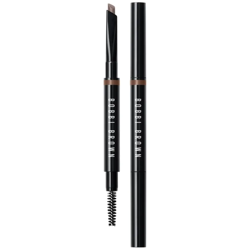 Bobbi Brown Long-Wear Brow Pencil er en vannfast øyenbrynsblyant med en skråformet spiss, designet for å forme, definere og gi fylde til brynene. Den kremede, men langvarige formelen sikrer en myk definisjon med naturlig finish. Den presise tuppen gjør det enkelt å skape både myke skygger og mer definerte bryn, mens den innebygde spoolie-børsten sørger for en jevn fargefordeling og et naturlig resultat. Beriket med pleiende ingredienser som olivenekstrakt og glyserin, som mykgjør huden, og appelsinolje, som tilfører en subtil frisk duft.