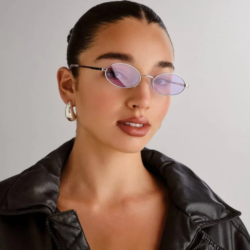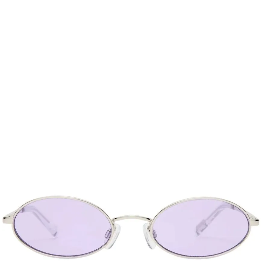 Le Specs Love Train Silver With Lilac Tint Lens er en tidløs oval solbrille med raffinerte detaljer og en smal passform som gir et minimalistisk og elegant uttrykk. Med skreddersydde Le Specs metalldetaljer på stengene, kombinerer denne brillen klassisk stil med moderne finesse.