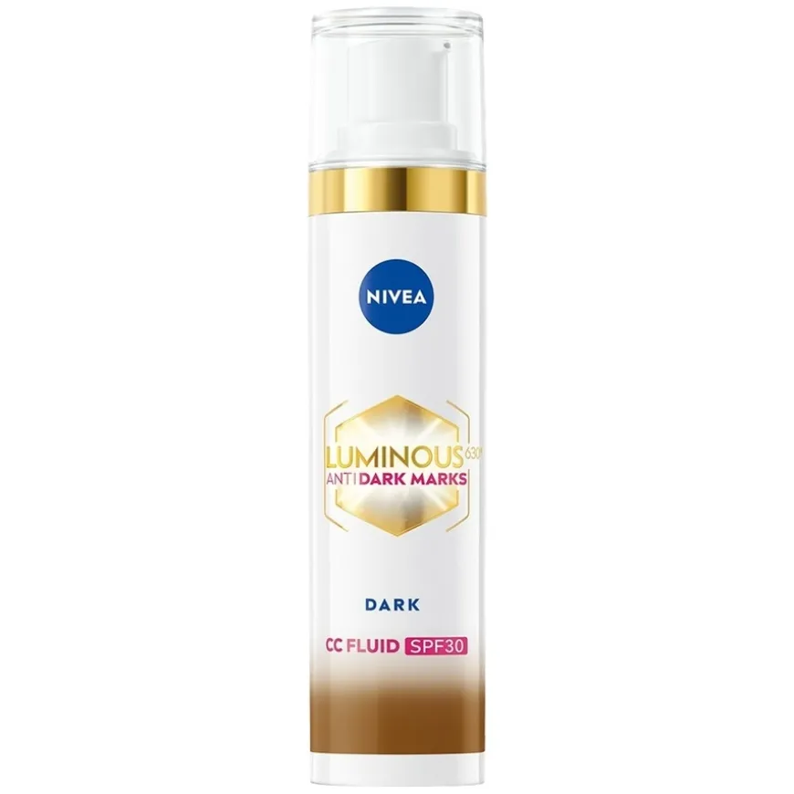 Luminous630 Anti Dark-Spot CC Fluid 3In1 Dark er en farget dagkrem som gir en jevn og strålende hudtone med en trippelvirkende formel. Mikroinnkapslede pigmenter tilpasser seg hudtonen for en naturlig dekning som jevner ut mørke flekker. Den avanserte THIAMIDOL®-formelen reduserer synlige mørke flekker på 2 uker og jevner ut hudtonen med +40 % på 8 uker (basert på en 12-ukers egenvurdert studie med 51 kvinner, 2023). Samtidig beskytter SPF 30 huden mot solen og forhindrer at mørke flekker kommer tilbake. Den lette formelen passer for alle hudtyper, inkludert sensitiv hud, og gir en naturlig, glødende finish.