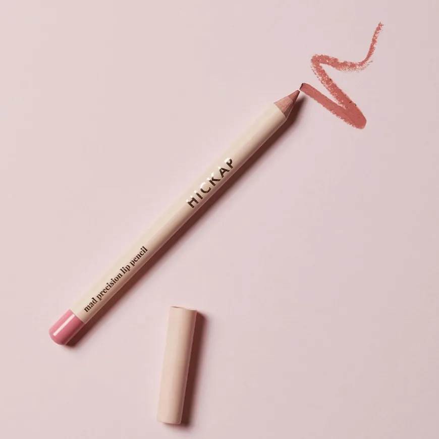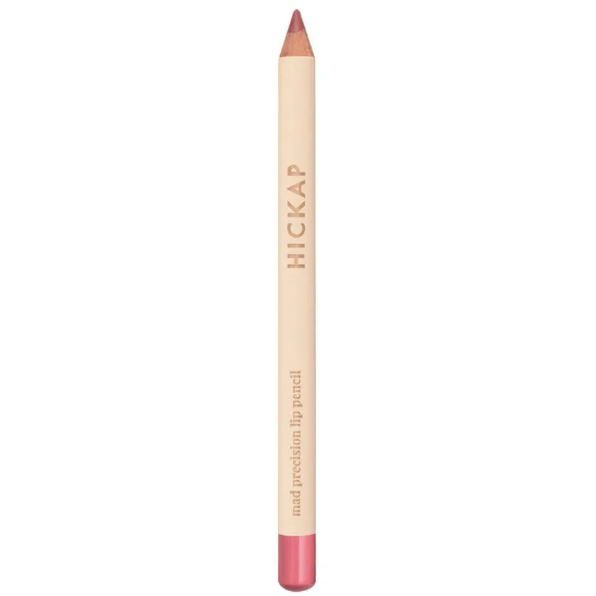 Precision Lip Pencil er en leppepen somdu enkelt kan definere, ramme inn og fylle ut leppene med. Bruk den til å lage perfekte konturer eller som grunnfarge over hele leppen. Den kremete veganske formelen gir optimal presisjon og en deilig følelse. Det høye innholdet av organisk kokosolje optimaliserer pennens effektivitet, bidrar til fargens intensitet og gjør at den glir mykt over leppene. Leppepennen er også beriket med vitamin E for en ekstra pleiende effekt. Mad Precision Lip Pencil passer fint sammen med Hickaps leppeglans, Dewy Lips Velvet Gloss. For å skape en illusjon av fyldigere lepper er Mad Precision Lip Pencil en halv nyanse mørkere enn den tilhørende nyansen til leppeglansen.