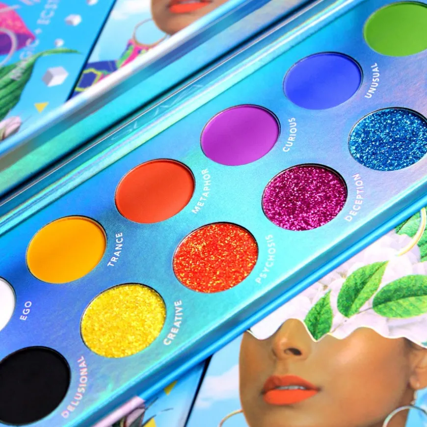 Magic + Ecstasy Eyeshadow Paletteer en palett med 12 nyanser av sterke pigmentfarger og skjønne teksturer. Dykk ned i de humørfylte matte pigmentene eller forsterk følelsene dine med multireflekterende presset glitter.