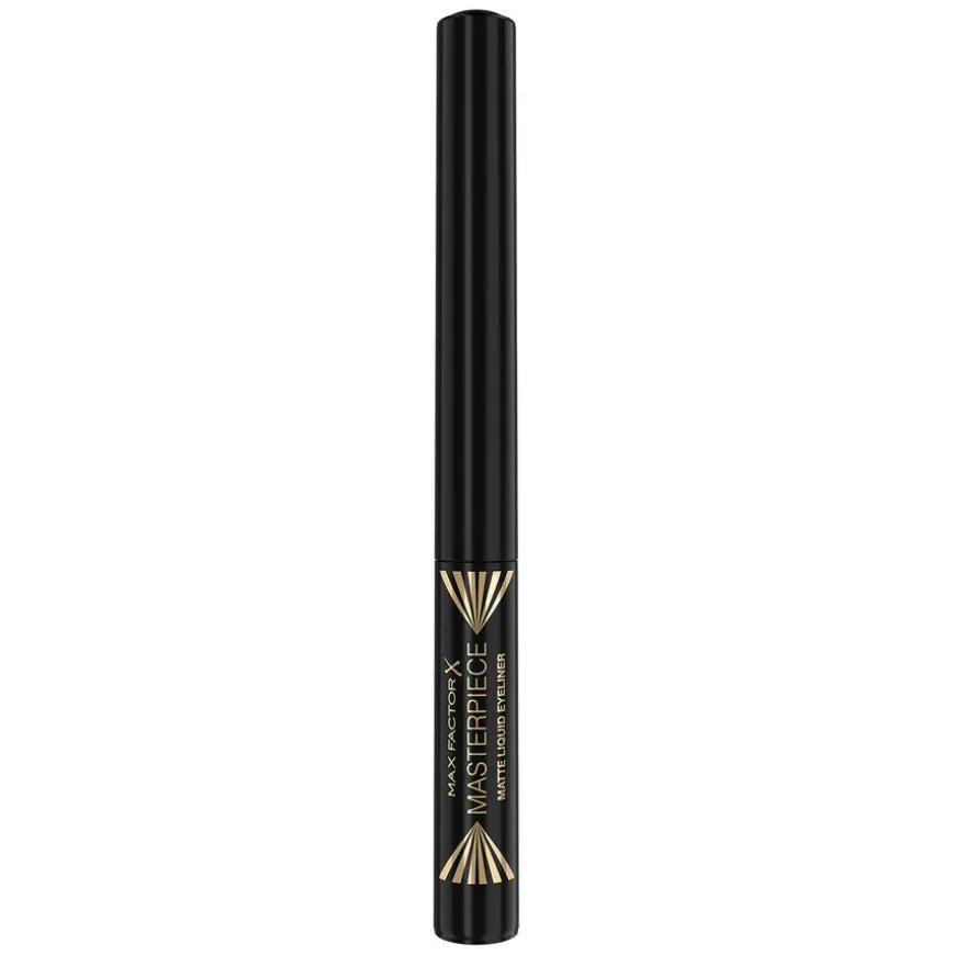 Masterpiece Matte Liquid Eyeliner er en svært pigmentert vanntett flytende eyeliner som gir intens farge og opptil 12 timers bruk med en matt finish. Fra nybegynnere til proffer, denne flytende eyelinerpennen tegner en fin linje og glir uanstrengt på takket være den høypresisjonsspissapplikatoren. Den hurtigtørkende formelen sikrer en sølfri påføring. Den veganske formelen er svettesikker, fuktsikker, smussikker, flakesikker, bleknesikker og overføringssikker. Den er laget av en velbalansert kombinasjon av polymere filmdannere og lette diffuserende partikler for å gi en dyp matt finish med stor utholdenhet.