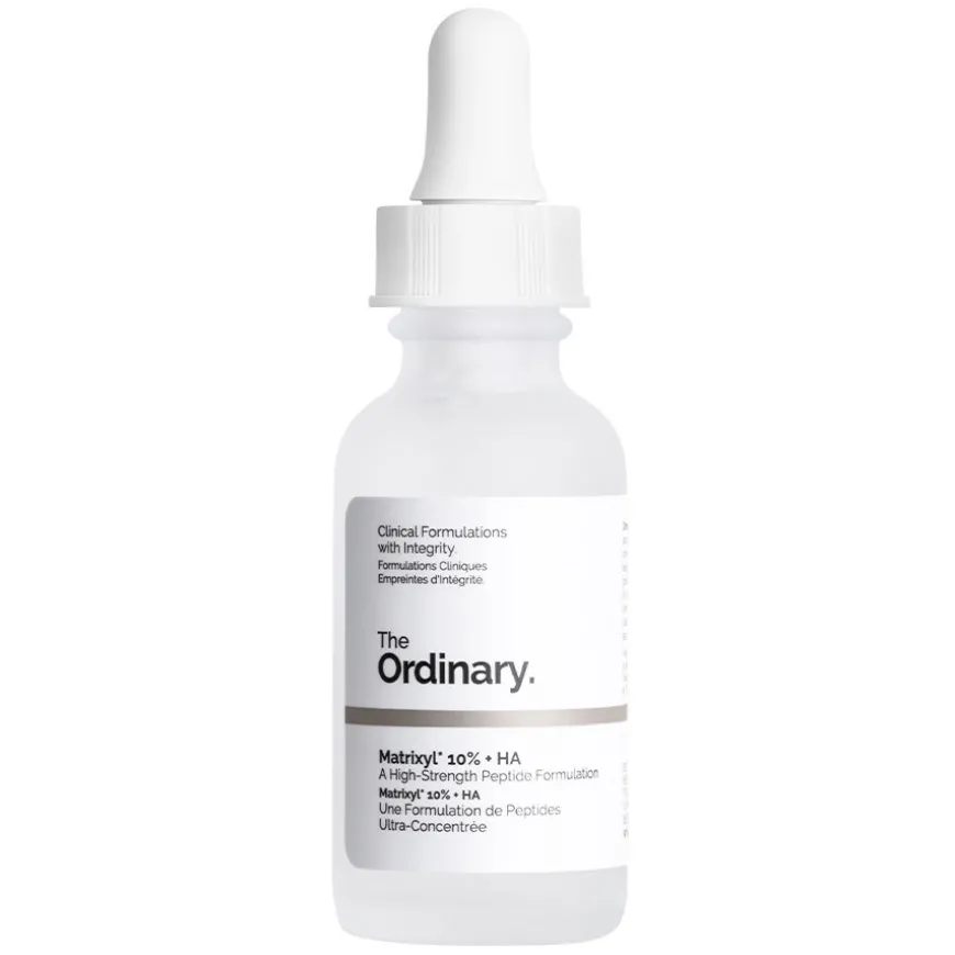 Matrixyl 10% + HA er et høykonsentrert anti-age serum som har vist seg å ha en forbedrende effekt mot fine linjer og rynker. Denne svært effektive sammensetningen har vist seg å redusere synligheten av statiske (sol) og dynamiske (mimikk) rynker. Formuleringen inneholder to generasjoner Matrixyl, Matrixyl 3000 og Matrixyl Synthe 6, med en konsentrasjon på til sammen 10 vekt% i et spesialisert hyaluronsyreleveringssystem. Peptidet i Matrixyl 3000 er palmitoyltetrapeptid-7 og peptidet i Matrixyl Synthe’6 er palmitoyl tripeptid-38. Produktet er vegansk og er ikke testet på dyr.
