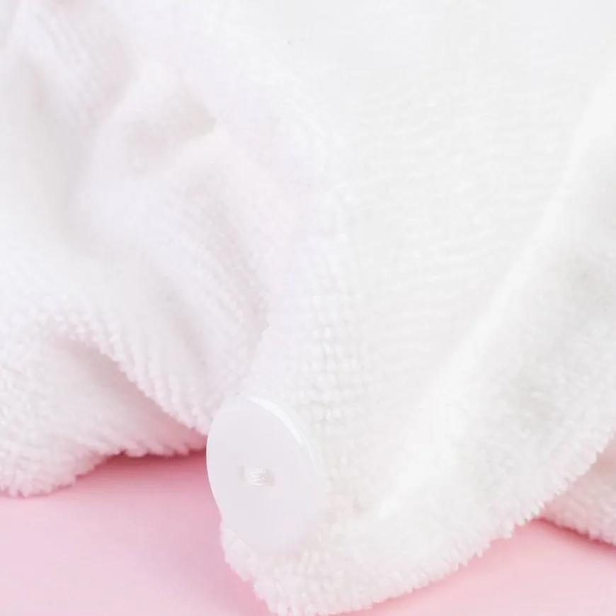 - Fest håndklehetten på plass med det elastiske løkken foran til knappen bak.