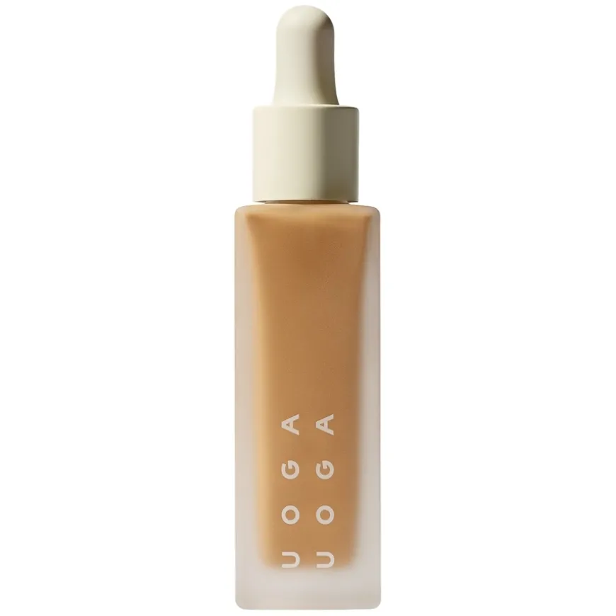 Mineral Serum Foundation SPF20 fra Uoga Uoga er en lett og silkemyk serumfoundation som kombinerer makeup og hudpleie i ett. Den gir middels dekning som jevner ut hudtonen og skjuler små ujevnheter, samtidig som huden får en naturlig glød og føles fuktet hele dagen. Formelen er beriket med hyaluronsyre, som trekker til seg og binder fuktighet i huden, og vitamin C, kjent for sine lysnende og oppfriskende egenskaper. Sammen bidrar disse ingrediensene til en jevnere hudtone og sunn glød.