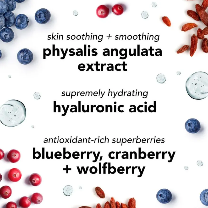 Zinc Oxide (12.025%), Aqua (Water, Eau), Isododecane, Caprylyl Methicone, Propanediol, Coco-Caprylate / Caprate, Glycerin, Cetyl PEG / PPG-10 / 1 Dimethicone, Methyl Dihydroabietate, Polyglyceryl-4 Diisostearate/Polyhydroxystearate/Sebacate, Zea Mays (Corn) Starch, Dimethicone, Sodium Chloride, Physalis Pubescens Fruit Juice, Yeast Extract, Hyaluronic Acid, Lycium Chinense Fruit Extract, Vaccinium Angustifolium (Blueberry) Fruit Extract, Vaccinium Macrocarpon (Cranberry) Fruit Extract, Tocopherol, Pentaerythrityl Tetra-di-t-butyl Hydroxyhydrocinnamate, Polyglyceryl-3 Polyricinoleate, Phenoxyethanol, Disteardimonium Hectorite, Zinc Stearate, 1,2-Hexanediol, Caprylyl Glycol, Caprylic/Capric Triglyceride, Isostearic Acid, Propylene Carbonate, Sodium Gluconate