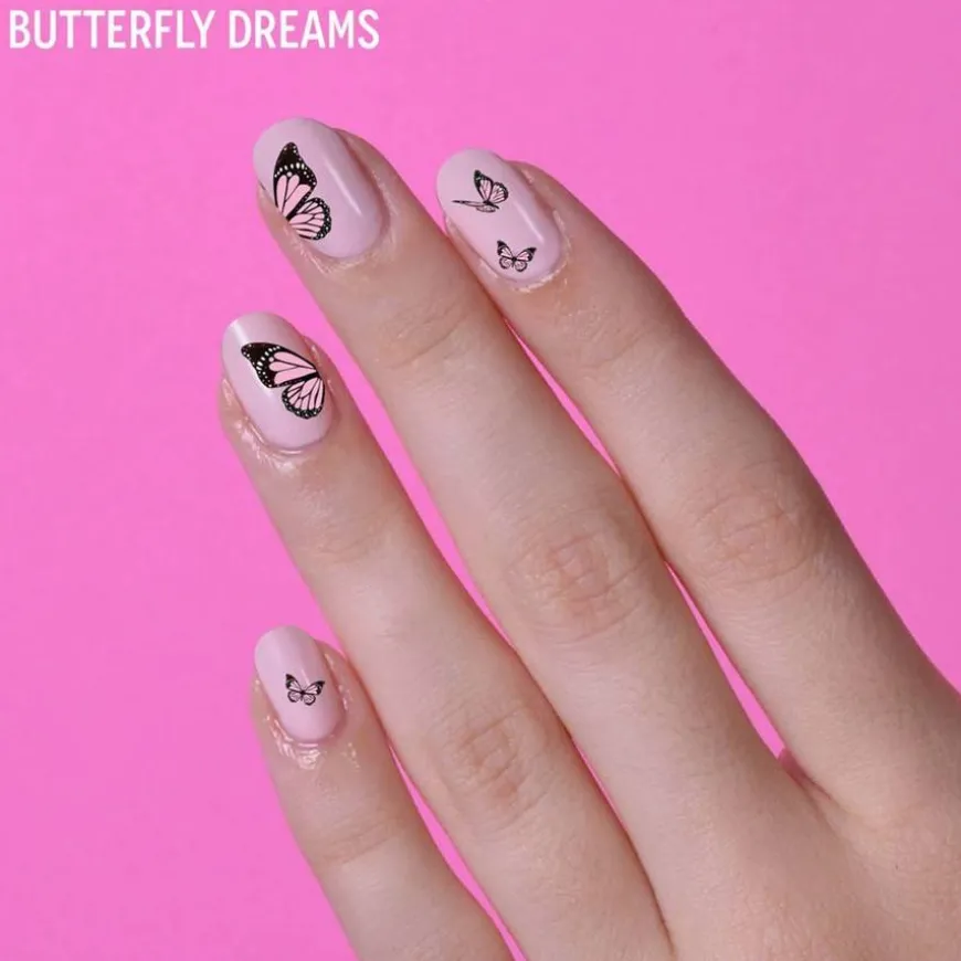 Stickers Butterfly Dreams er et ark med klistremerker som du kan dekorere neglene dine med. Slipp løs dine indre sommerfugler med de fortryllende Butterfly Dreams negleklistremerkene. På kort tid kan du enkelt lage de fineste personlige sommerfuglneglene uten å måtte være flink til å tegne eller male.