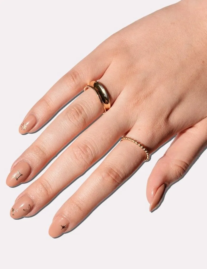 Stickers Lucky Star Zodiac er ark med klistermerker i gull som du kan dekorere neglene dine med. Hvis du er interessert i stjernetegn og andre populære symboler, så må du bare eie klistremerkene i gull. Arket inneholder alle stjernetegnene og en mengde andre forskjellige motiver som er perfekte for å gjøre neglekunsten din helt unik.