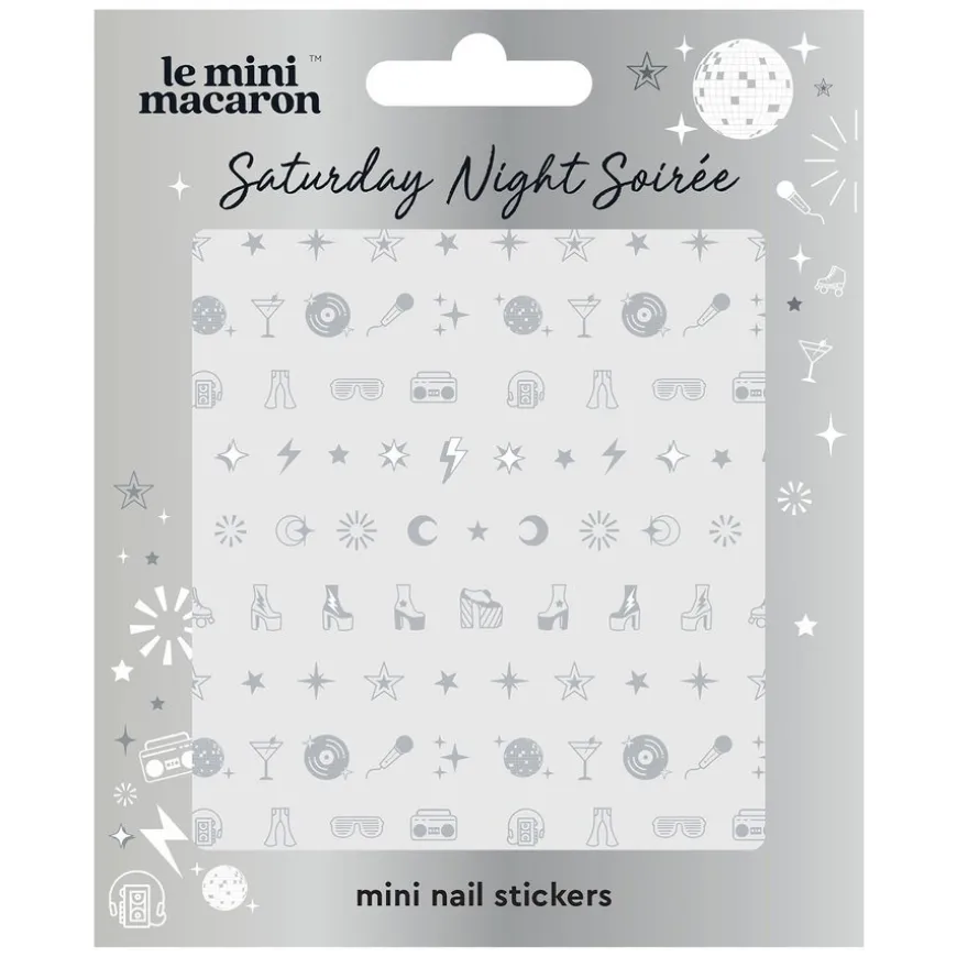 Le Mini Macaron Mini Nail Art Stickers Saturday Night Soirée er ark med klistermerker som du kan dekorere neglene dine med.Få glam med disse retro, disco-inspirerte designene som er perfekte for å gjøre neglekunsten din helt unik.