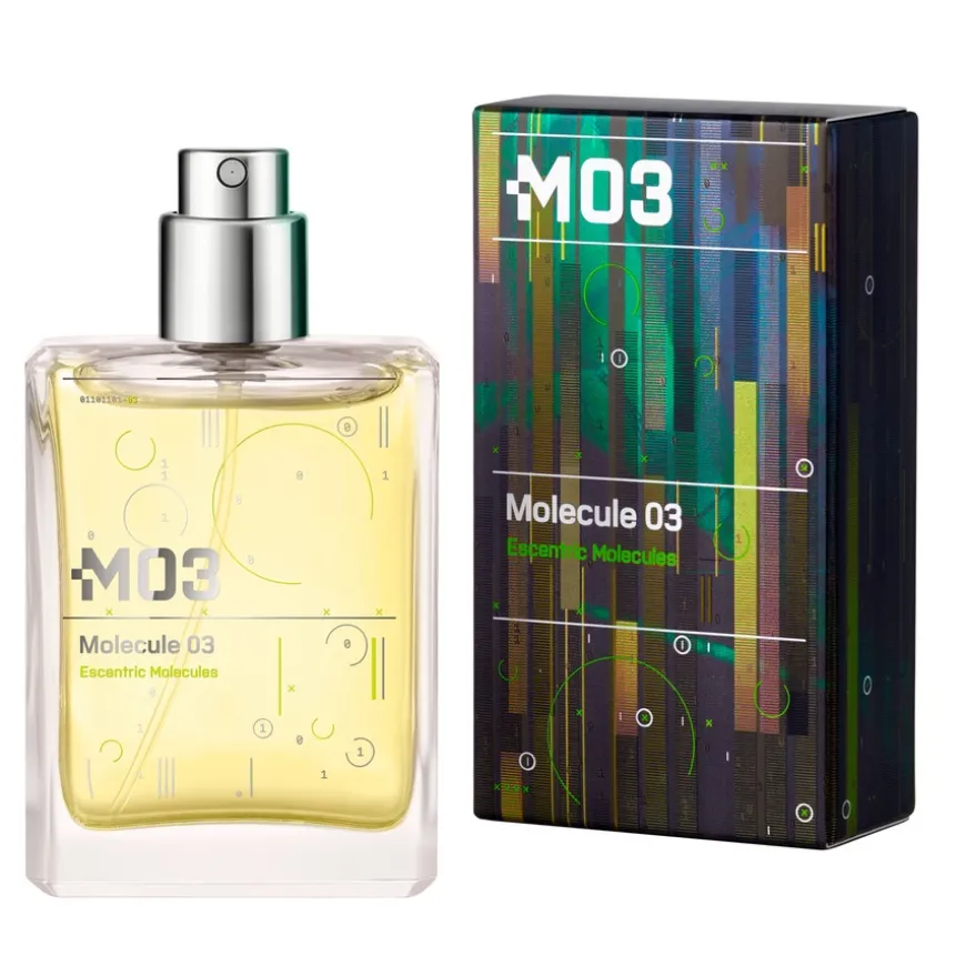 Molekyle 03-duften er radikalt minimalistisk. Den inneholder ingen duftstoffer annet enn aroma-molekylet Vetiveryl Acetate. Kunder som synes Molekyle-duftene er for subtile, kan vurdere å prøve Escentric-duftene, som alltid vil ha en kraftigere spredning.