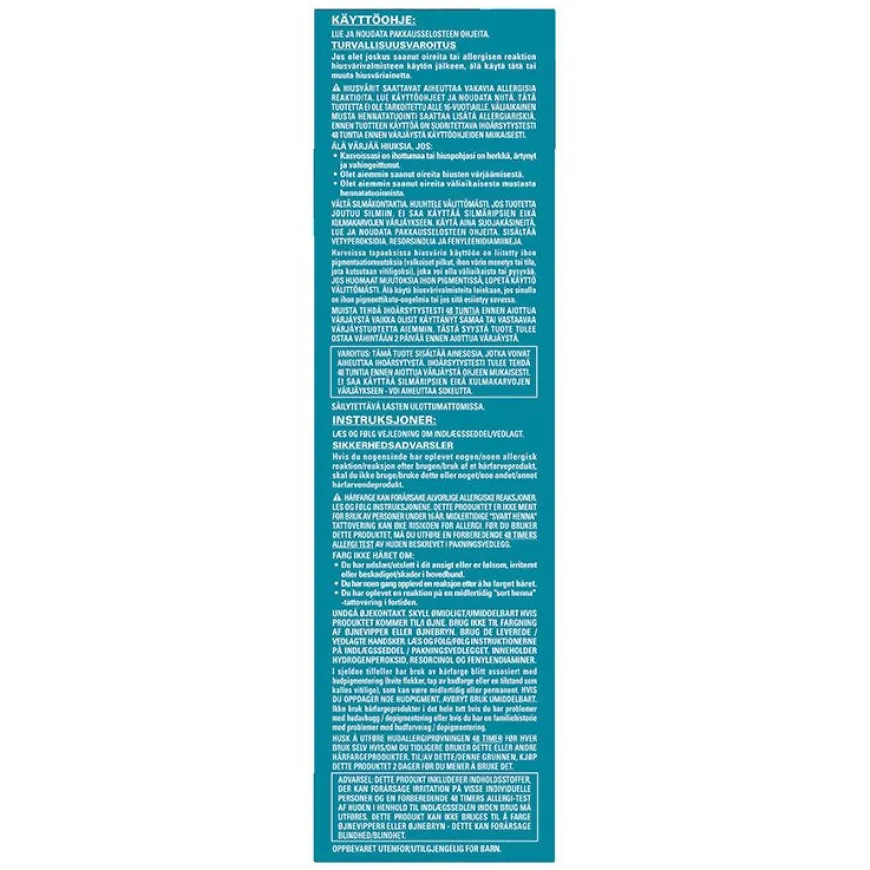 Färg: Aqua,Coco-Glucoside, Aminomethyl Propanol,p-Phenylenediamine,Resorcinol,4-Chlororesorcinol,Carbomer,m-Aminophenol,Parfum,2,4-Diaminophenoxyethanol Sulfate,N,N-Bis(2-Hydroxyethyl)-p-Phenylenediamine Sulfate,Sodium Sulfite,Erythorbic Acid,p-Aminophenol,Caramel,Trisodium EDTA,Cinnamidopropyltrimonium Chloride,Laurdimonium Hydroxypropyl Hydrolyzed Wheat Protein,Aloe Barbadensis Leaf Juice,Chamomilla Recutita Flower Extract,Panthenol,Tocopheryl Acetate,Linalool,Limonene,Alpha-Isomethyl Ionone,Benzyl Benzoate FÄRGUTVECKLAREN: Aqua,Cetyl Alcohol,Hydrogen Peroxide,Glyceryl Stearate,PEG-100 Stearate,Steareth-2,Laureth-23,Aloe Barbadensis Leaf Extract,Colloidal Oatmeal,Etidronic Acid,Maltodextrin
