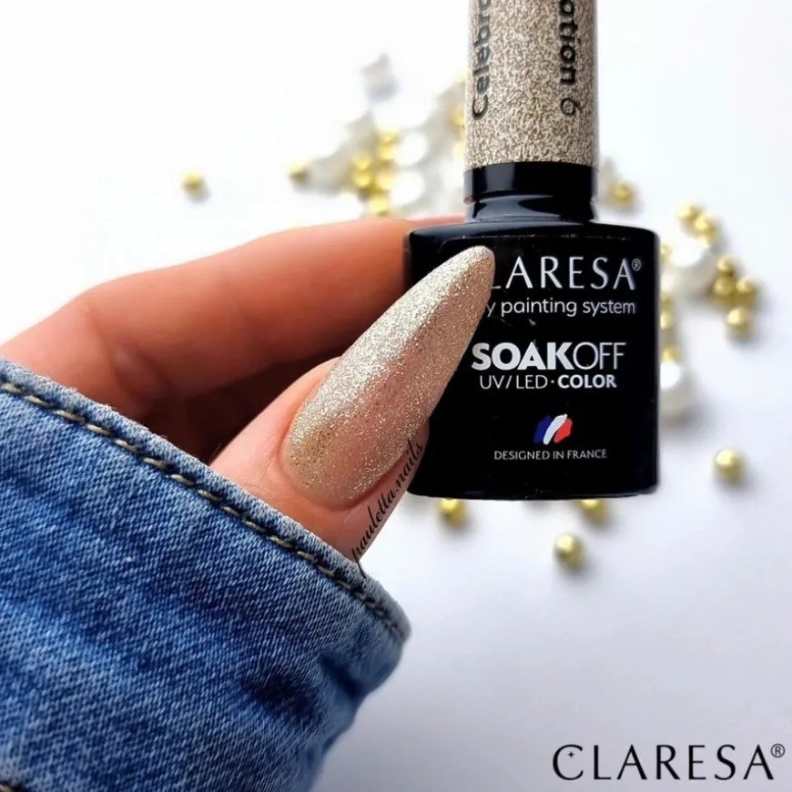 Hybrid neglelakk (soak-off) fra Claresa med varighet på opptil 4 uker. Produktet brukes sammen med Claresa basecoat og topcoat og må herdes i UV/LED-lampe.