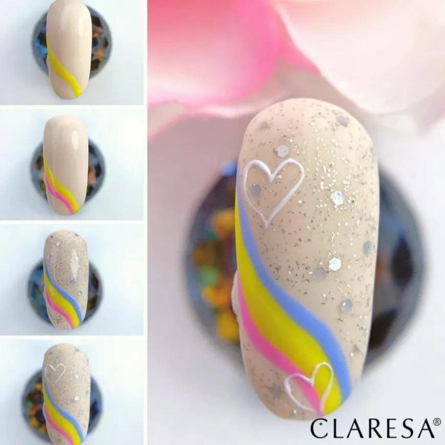 Hybrid neglelakk (soak-off) fra Claresa med varighet på opptil 4 uker. Produktet brukes sammen med Claresa basecoat og topcoat og må herdes i UV/LED-lampe.