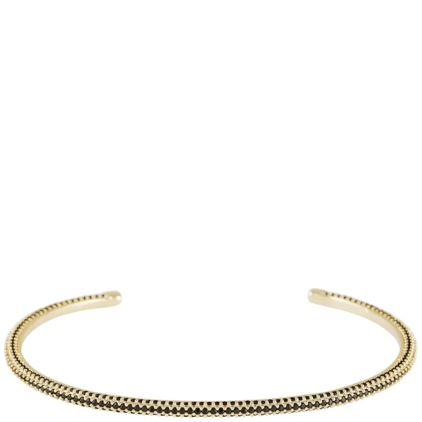Naomi Small Stone Cuff Bracelet i gull er et slankt og stilrent mansjettarmbånd dekorert med svarte cubic zirconia-stener. Med en innvendig dimensjon på 62x45mm, en bredde på 3mm, og en åpning på 25mm, gir dette armbåndet et subtilt og elegant preg til både hverdags- og festantrekk. Det tidløse designet gjør det til et allsidig tilbehør som passer enhver anledning.