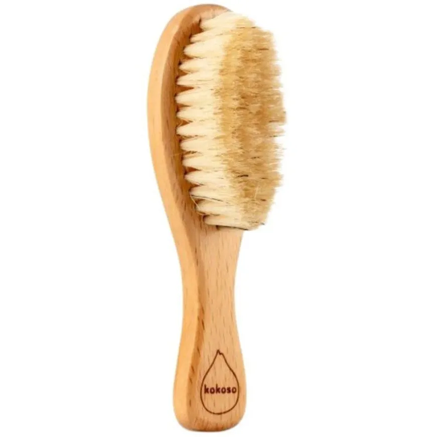 Natural Baby Hairbrusher en naturbørste er laget av 100 % naturlig bust og massivt tre. Børsten er myk og god, og grer babyens tynne hår, og er samtidig mild og snill mot hodebunnen. Hårbørsten er 15 cm lang og tar liten plass i stellevesken. Hårbørsten kommer i en liten søt pose for oppbevaring og beskyttelse. Børsten er super å benytte sammen med Kokoso Baby Oil og Happy Scalp – begge kan være effektive mot skurv i hodebunnen.