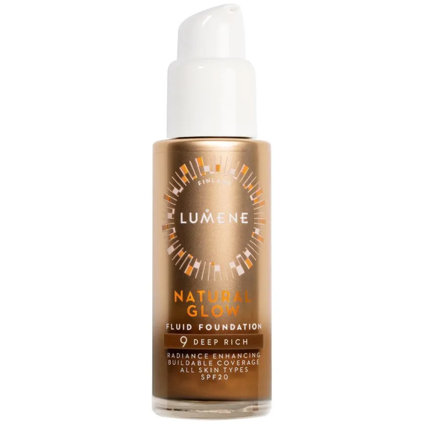 Natural Glow Fluid Foundation SPF20 er en lett dekkende foundation med mulighet for å bygge opp dekningen, slik at du får en naturlig look og en strålende finish. Den lette veganske formelen er enkel å påføre. Sammensetningen inneholder nordiske multebær som gir glød og fuktighetsgivende hyaluronsyre som bidrar til å holde huden jevn og frisk hele dagen med en vakker glød. Beskytter huden mot de skadelige virkningene av UVA/UVB-stråler (SPF 20).