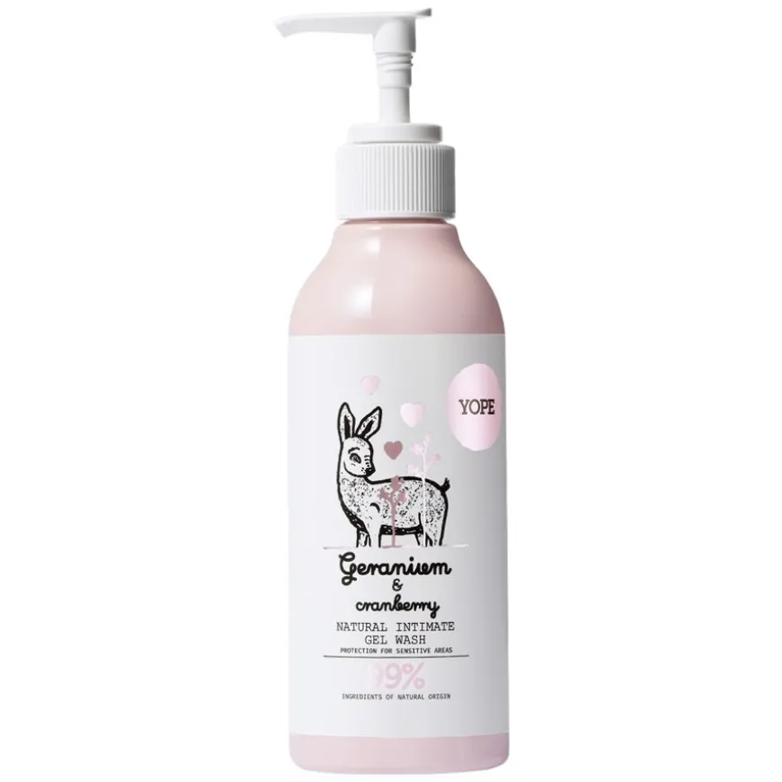 Geranium And Cranberry Natural Intimate Wash er en naturlig og beroligende intimvask med gelkonsistens, utviklet for skånsom, daglig pleie av intimområdet. Den inneholder 99 % naturlige ingredienser og er formulert med pH-verdi på 4, som støtter hudens mikrobiom og beskytter mot irritasjon og ubehag. Formelen er basert på antiinflammatorisk geraniumblomstervann i stedet for vanlig vann, og er beriket med milde plantebaserte vaskestoffer og pleiende planteekstrakter. Perfekt for kvinner med sensitiv hud, og ved behov for ekstra komfort og beskyttelse.