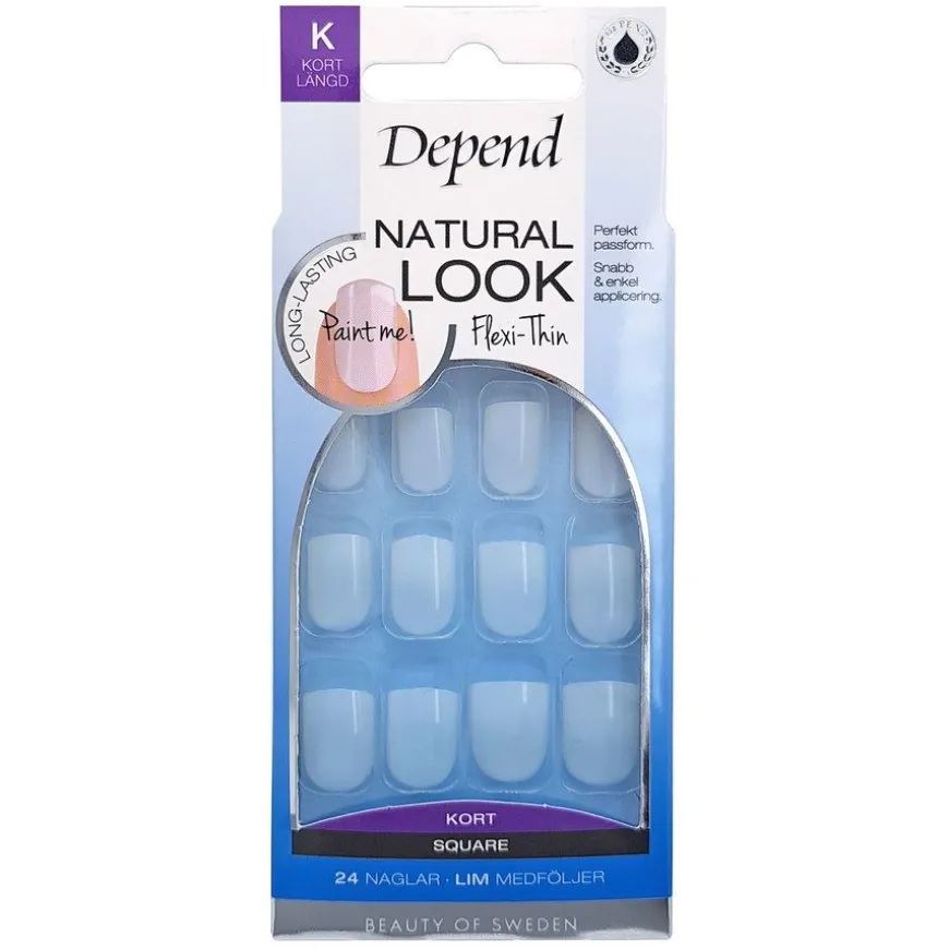 Depend Natural Look er ufargede løsnegler for deg som vil lakkere og skape din egen look. Flexi-Thin gir den ultimate passformen og er enkle å sette på med det medfølgende limet.