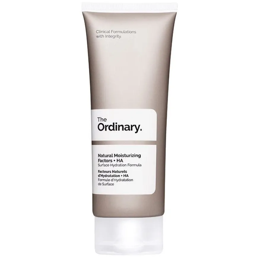 The Ordinary Natural Moisturizing Factors + HA er en fuktighetsgivende formulering til hudoverflaten. Formula/krem som fukter hudoverflaten. Naturlige fuktighetsfaktorer (NMF) holder epidermis beskyttet og hydrert og består av flere aminosyrer, fettsyrer, triglyserider, urea, ceramider, fosfolipider, glyserin, sakkarider, natrium-PCA, hyaluronsyre og mange andre forbindelser som er naturlig tilstede i huden. Denne formelen gir ren fuktighet og inneholder 11 aminosyrer, fosfolipider, alfa/beta/gamma fettsyrer, triglyserider, steroler og sterolestere, glyserin, forløpere til ceramider, urea, sakkarider, natrium-PCA og hyaluronsyre. Formelen gir umiddelbar fuktighet og varige resultater med fortsatt bruk.