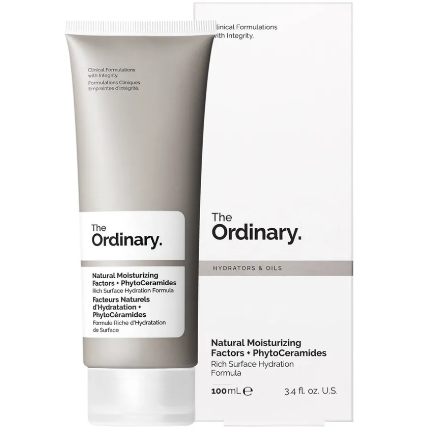 Natural Moisturizing Factors + PhytoCeramides er The Ordinarys mest nærende fuktighetskrem, formulert med nesten dobbelt så mye fuktighetsgivende mykgjøringsmidler som deres Natural Moisturizing Factors + HA. Denne rike og påfyllende kremen øker umiddelbart hudens fuktighet med 68 %, bidrar til å styrke hudbarrieren og gir fukt hele dagen, noe som gjør den ideell for tørr hud.*