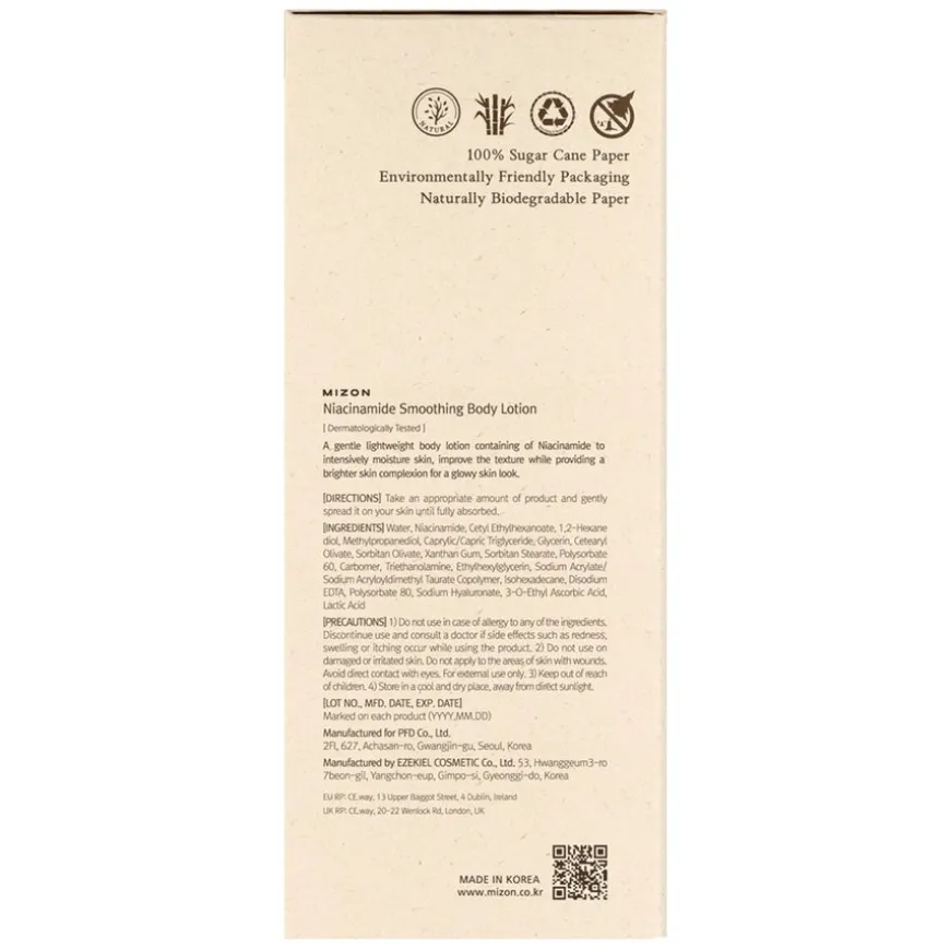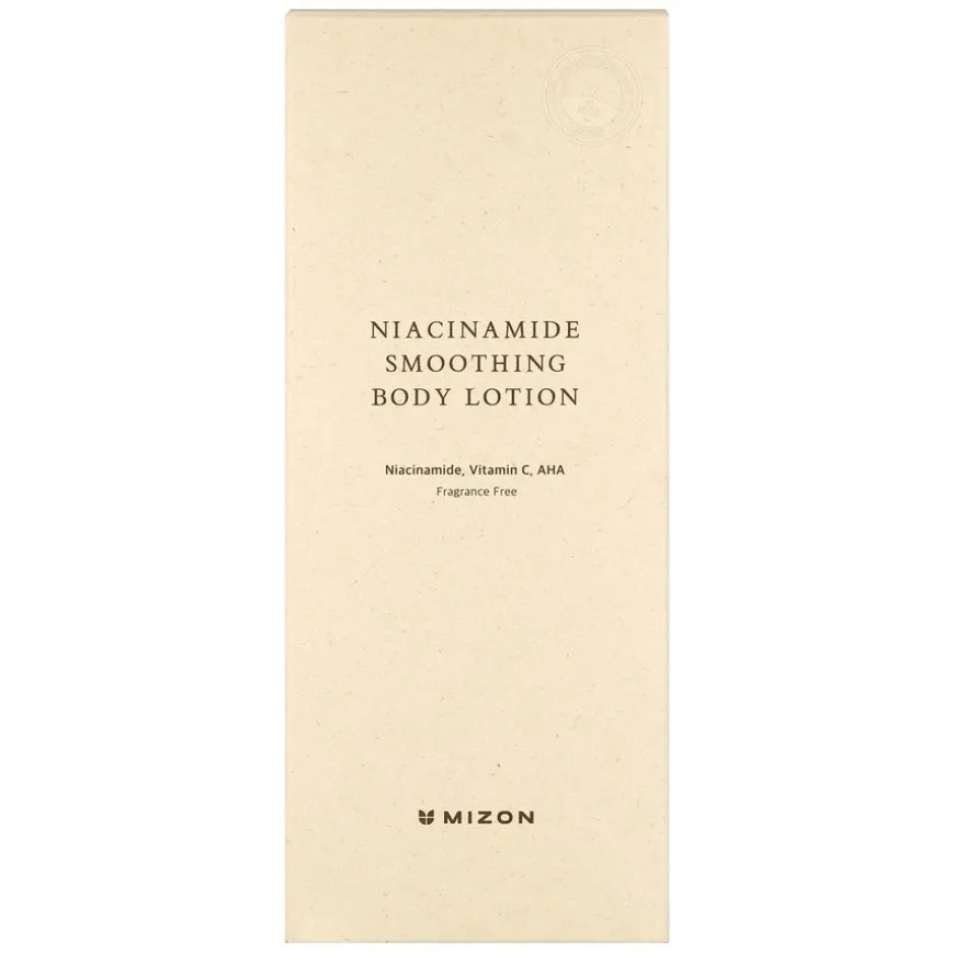 Niacinamide Smoothing Body Lotion er en bodylotion tilsatt 10% niacinamid, C-vitamin og AHA som fukter og lysner matt hudtone. Denne lotionen hjelper med å motvirke hyperpigmentering og gjør huden smidig og glatt. Den er duftfri og dermatologisk testet, noe som gjør den ideell for sensitiv hud. Lotionen gir intensiv fuktighet og bidrar til en jevnere og mer strålende hudtone.