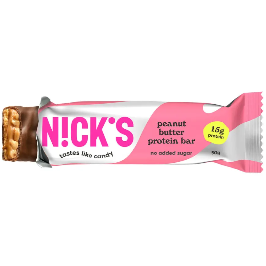 Nick’s Protein Peanut Butter er en proteinbar med et lag av mykt peanøttsmør, soft protein overtrukket med melkesjokolade. Perfekt som mellommåltid, trening eller på farten. Smaker som sjokolade! Nick’s eliminerer avstanden mellom nytelse og sunnhet, gjennom matinnovasjon, for å gi flere mennesker muligheten til å ta bedre matvalg. Barene er uten tilsatt sukker, fri for palmeolje og gluten, kun nytelse!
