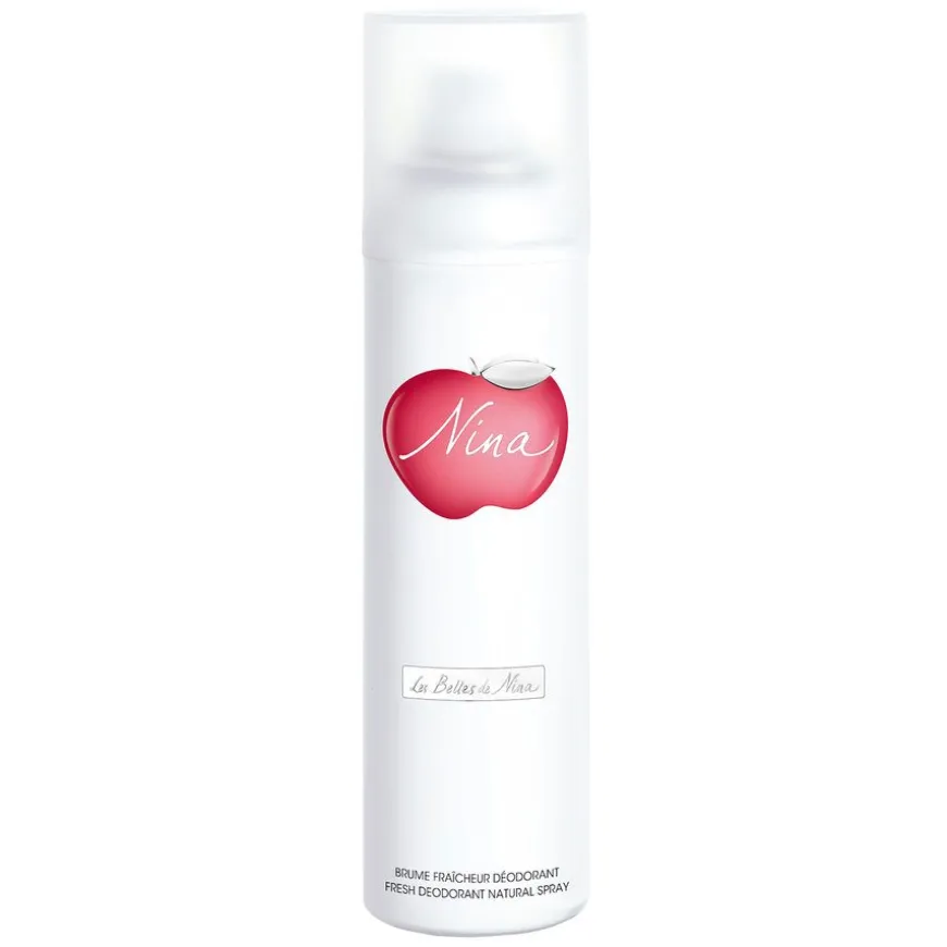 Nina Deodorant Spray er en deodorant med samme nydelige duft som Nina Ricci Nina;en moderne, magisk og fortryllende fortelling. Sjarmerende og ren, Nina har utviklet seg gjennom årene til å bli en moderne prinsesse. Hun er en kvinne med fri ånd som fanger øyeblikkets magi og øyeblikkets skjønnhet.Nina er historien om et fristende rødt karamellisert eple. Et fristende eple som fanger arven etter Couture House of Nina Ricci.