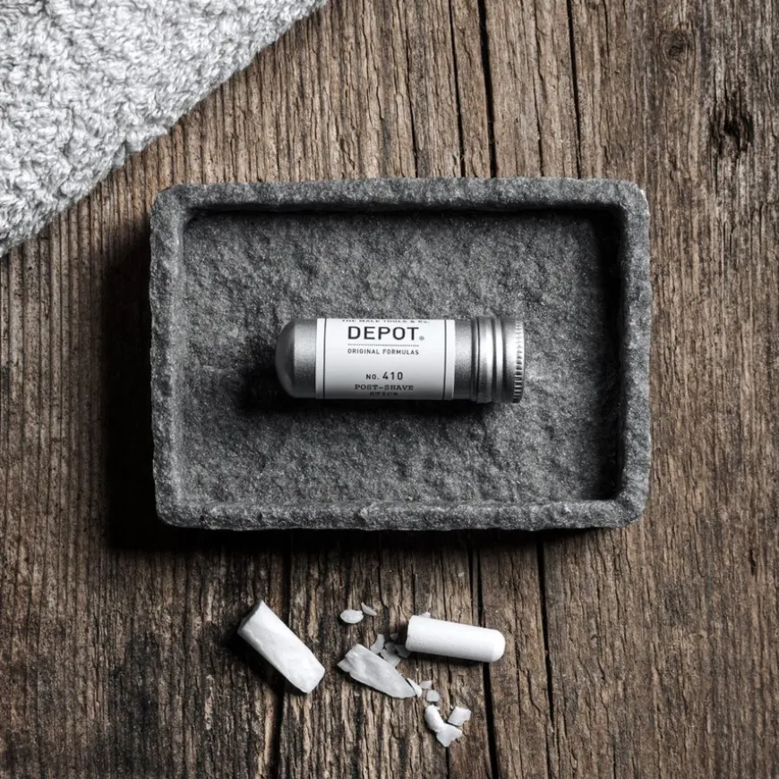 No. 410 Post-Shave Stick er en blodstillerstift mot irritert hud og småkutt. Produktet er med på å motvirke eventuelle problemer forårsaket av barberhøvelen på huden. Inneholder kalium-aluminiumsulfat og aluminiumsulfat. Duftfritt.
