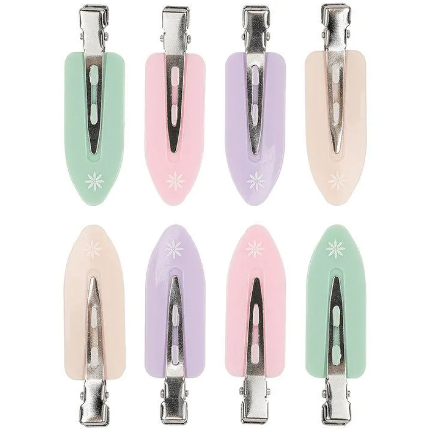 8 krøllefrie hårspenner inkludert i 4 forskjellige pastellnyanser.