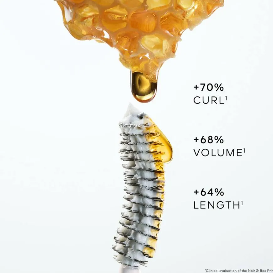 Noir G Bee Primer Lash-Plumper Serum er et vippeserum som kombinerer en pleiende formel med bienes skatter for et bedre makeup-resultat på 24 timer. Øyevippene blir synlig sterkere og vakrere for hver dag som går. Den vippepleiende formulaen dekker hver eneste vippe og forberederer for makeup, dette takket være en trippelvirkende effekt for volum, bøy og lengde. Den buede børsten gjør at vippene separeres for en 360-effekt. Noir G Bee Primer kan brukes alene, før maskara eller som en nattmaske for øyevippene.