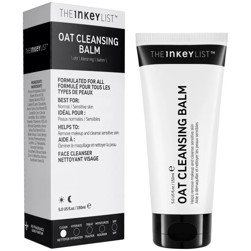Oat Cleansing Balm er en luksuriøs rensebalm som skånsomt løser opp sminke, renser huden og gir næring. Den er ideell for sensitive hudtyper. Den kombinerer beroligende kolloidalt havregryn med ceramider som støtter hudens beskyttende barriere. Den er også formulert med havrekjerneolje.