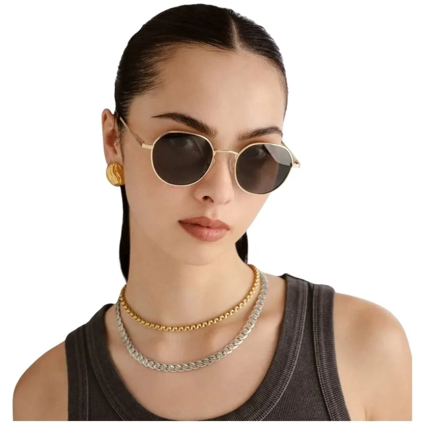 Le Specs Odyssey er en klassisk rund solbrille med en moderne oppdatering av den ikoniske metallrammen. Den midtstørrelse-passformen, den stilrene metallbroen og de intrikate pinstripe-detaljene på stengene gir en sofistikert unisex-look som passer til enhver stil.