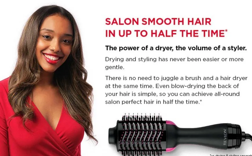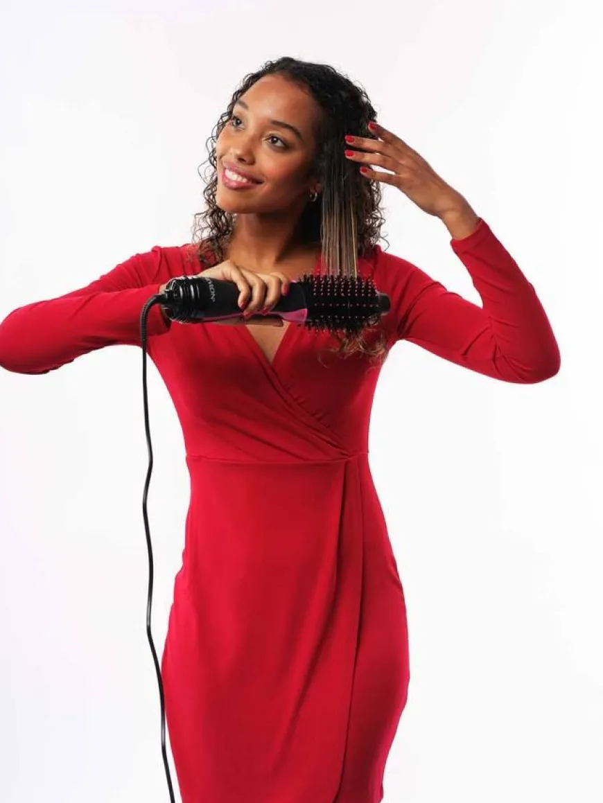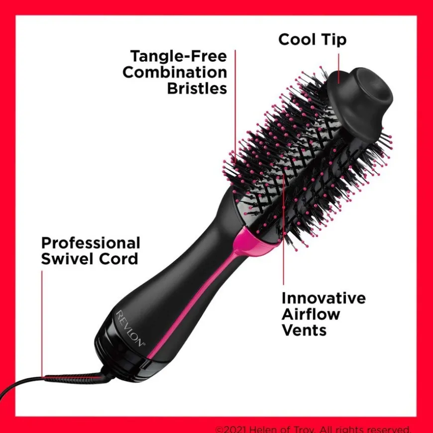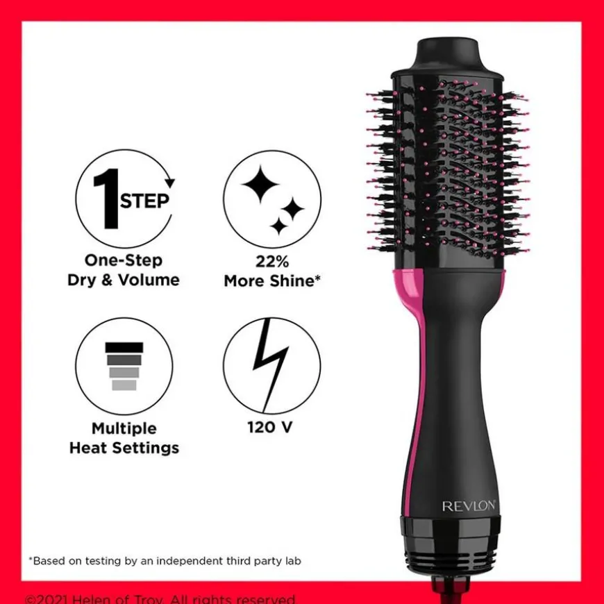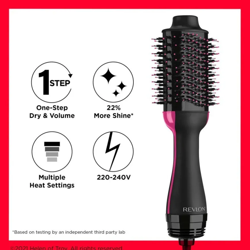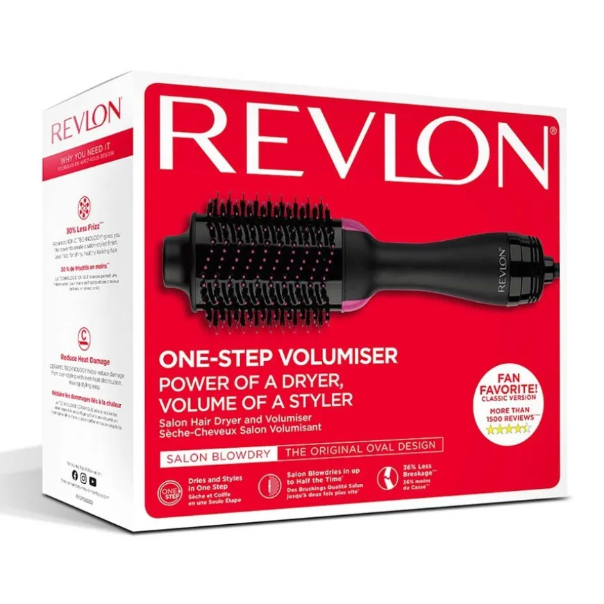 One-Step Dryer and Volumiser er en varmluftbørste som er designet for å levere nydelig volum og strålende glans på bare ett trinn. Den unike formen har lett buede sider for utjevning av håret, mens de runde kantene gir volum ved røttene og vakkert krøllede ender, med fantastisk stil på kort tid som resultat.