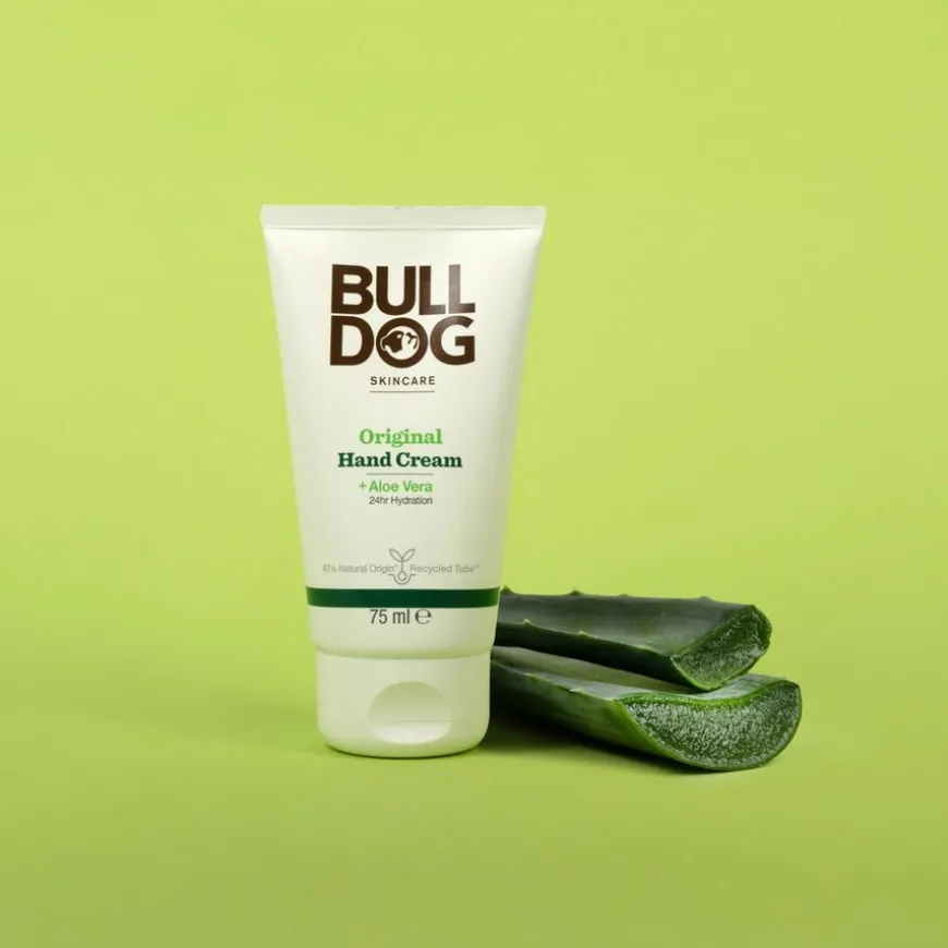 Bulldog Original Hand Cream er en håndkrem for menn, med 97 % naturlig ingredienser. Håndkremen er utviklet for å gi gjenfukting hele dagen og få hendene til å føles myke og beriket med næring. Produktet inneholder blant annet Aloe Vera, kjent for sine gjenfuktende og roende egenskaper. Passer normal til tørr hud. Absorberes lett av huden og føles ikke fet eller klebrig.