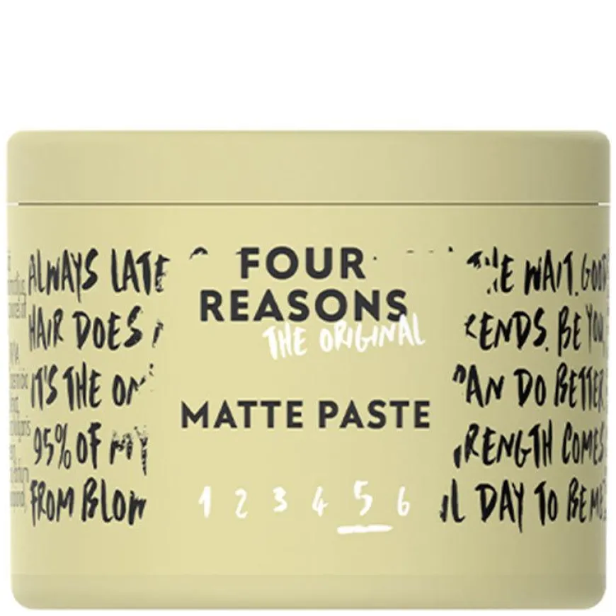Four Reasons Original er et komplett sortiment hårpleieprodukter i resirkulerbare pakninger. Produktene er 100 % veganske og inneholder ingen animalske bestanddeler. Alle plastforpakninger består av resirkulerbar, biobasert sukkerrørplast, noe som reduserer produktenes karbonavtrykk betydelig.