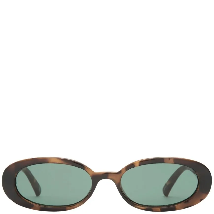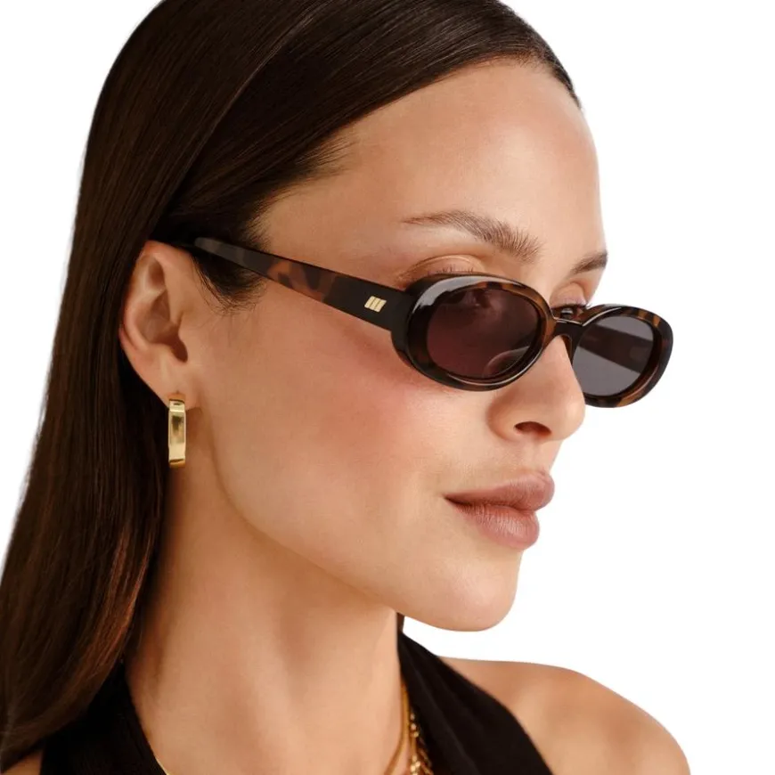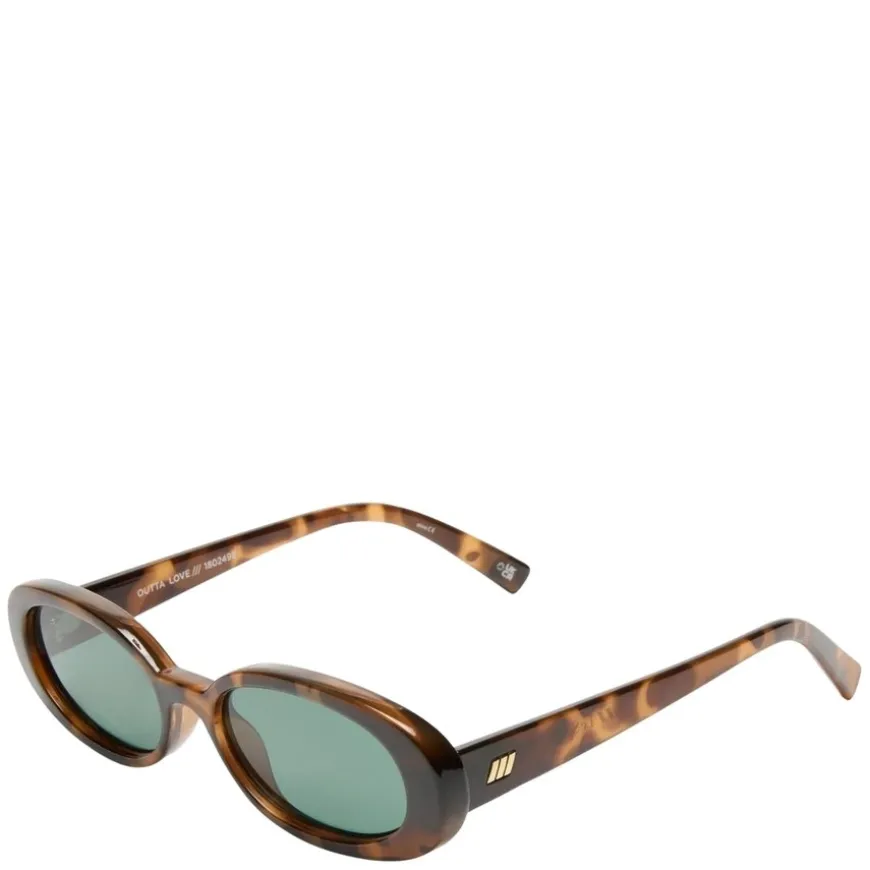Outta Love Volcanic Tort fra Le Specs er en ikonisk solbrille som kombinerer 90-talls selvtillit med et minimalistisk uttrykk. Den smale, ovale rammen har en moderne, flat profil og signaturdetaljer i gullfarget metall, og er utformet for en mindre, mer petite passform – perfekt for smalere ansiktsformer. Med en mørk skilpaddemønstret ramme og mørkegrønne glass, gir solbrillen både stil og funksjonalitet. Rammen er laget av Ecozen T110, en BPA-fri polymerplast med 10 % plantebasert biomasse, som sikrer slitestyrke og lav vekt. Glassene i polykarbonat er knuse- og ripebestandige, og gir kategori 3 UV-beskyttelse. Sett på kjendiser som Bella Hadid, Gigi Hadid, Sophie Turner, Dua Lipa, Kourtney Kardashian, Olivia Rodrigo, Kesha og Zoe Kravitz.